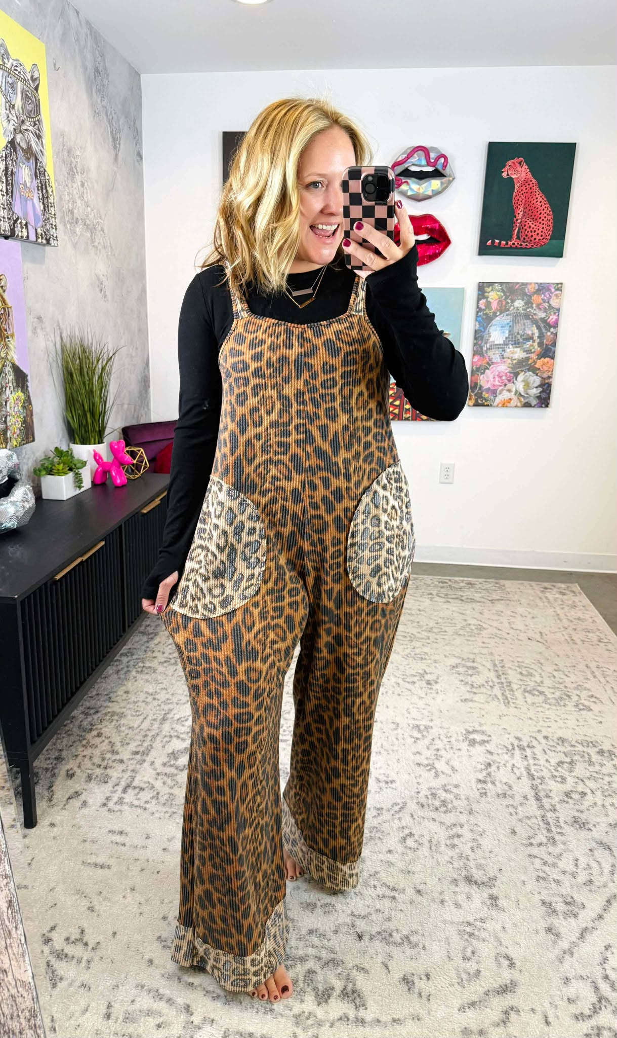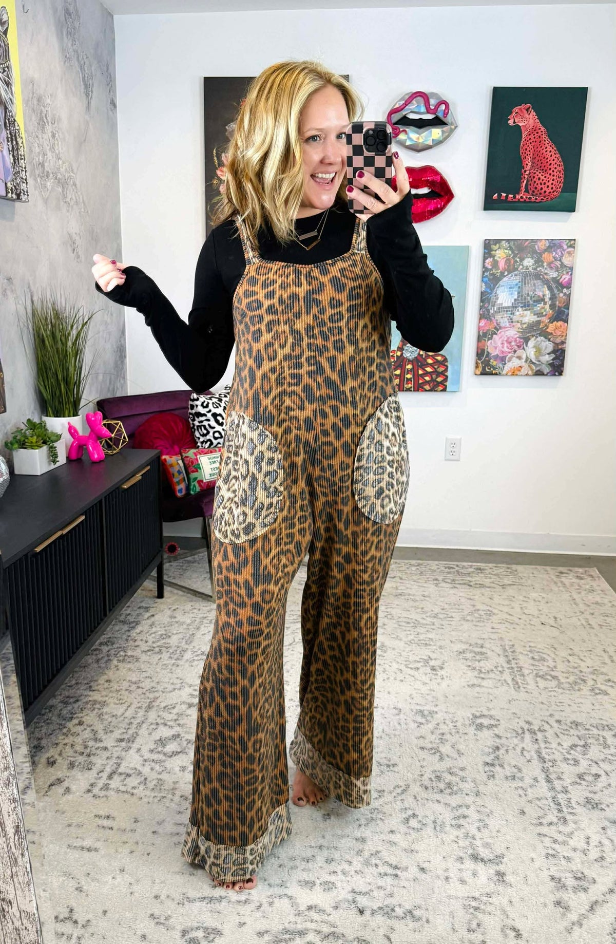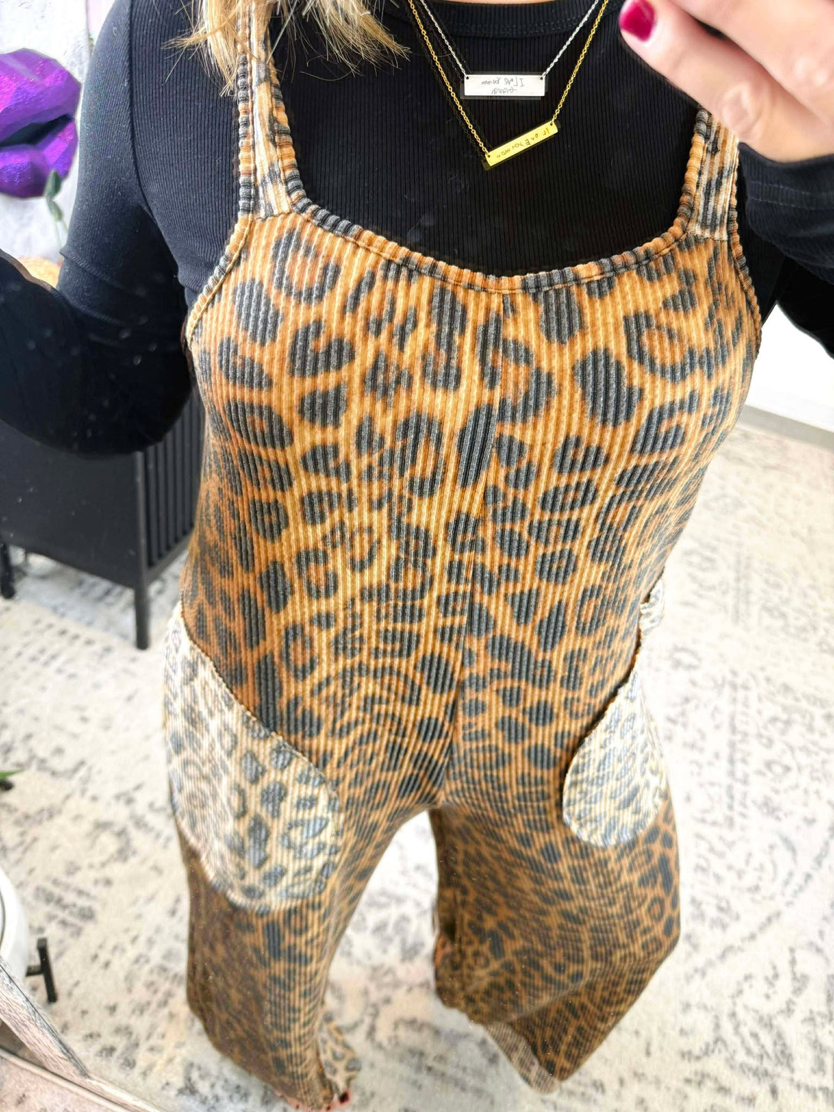 Trust us when we tell you our new rompers will be your GO to outfit! You're gonna want to live in this cute thing!  Slip it on and you're ready to go! Ultimate softness with a washed terry camo fabric and ribbed cheetah fabric, cute reverse fabric details and large side pockets! Grab these quick!