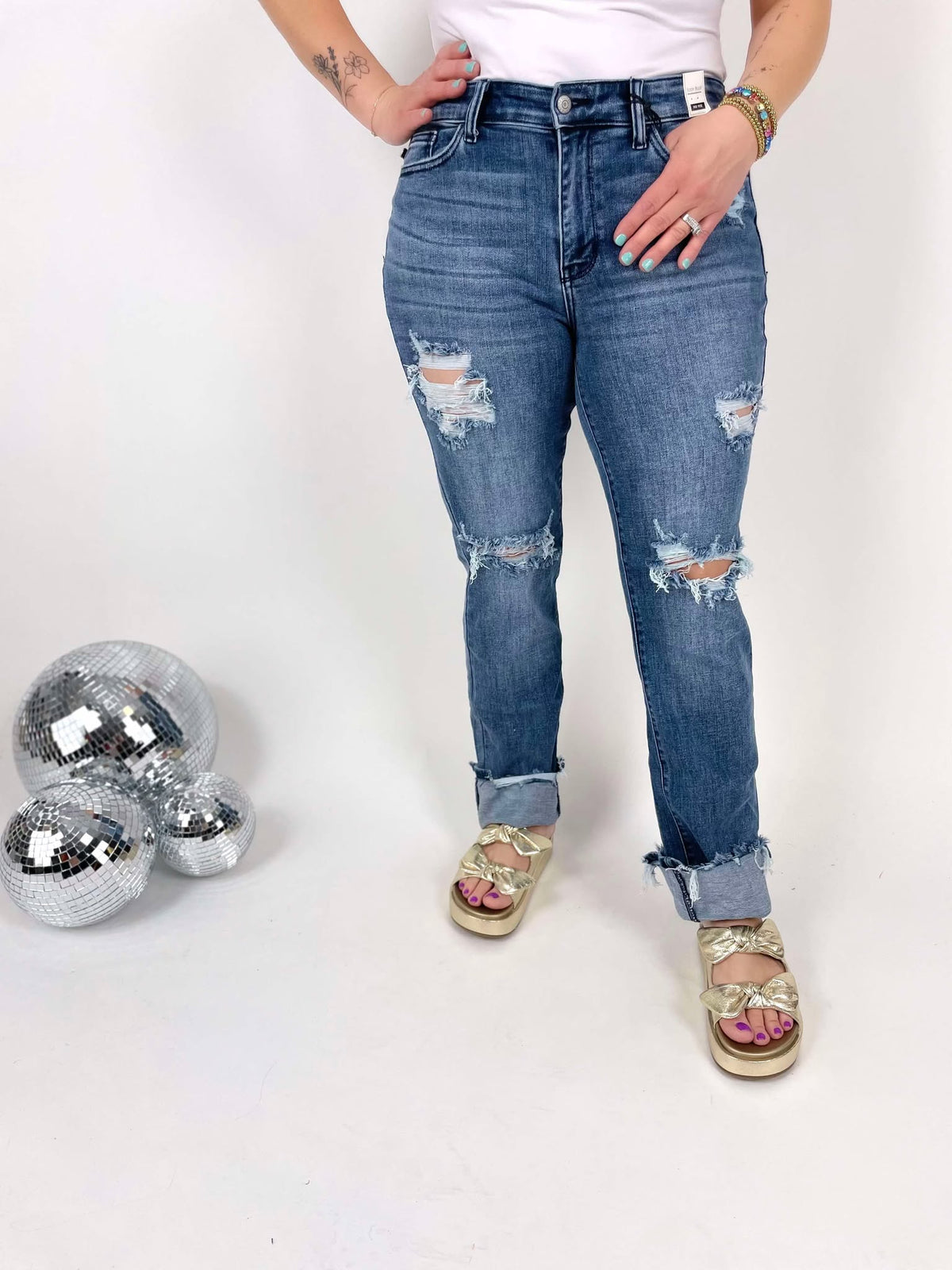 Judy Blue Urban Soul Distressed Straight Jeans { Size 0-24W }