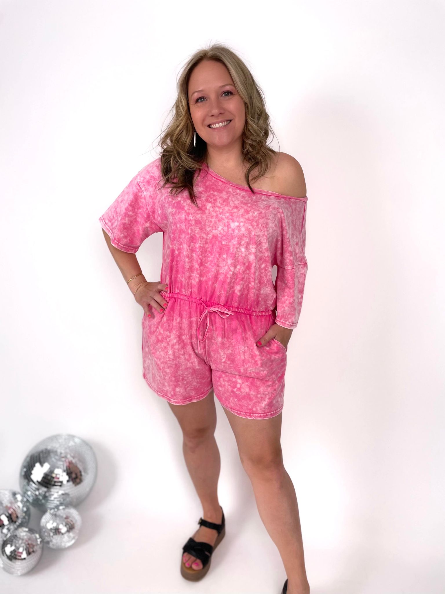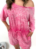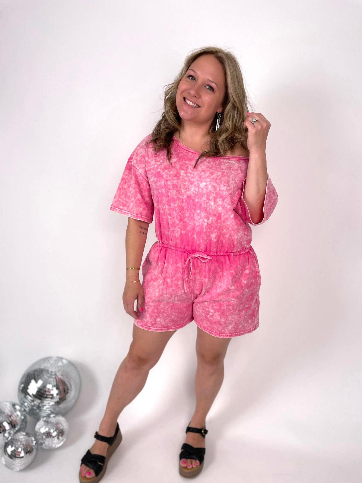 Indulge in sweet style with our Bubblegum Bliss Romper. Crafted from a lightweight cotton knit, this short sleeve romper boasts an elastic waist and adjustable drawstring for a cozy fit. Perfect for a playful day out, embrace your inner child and add some sugary fun to your wardrobe!