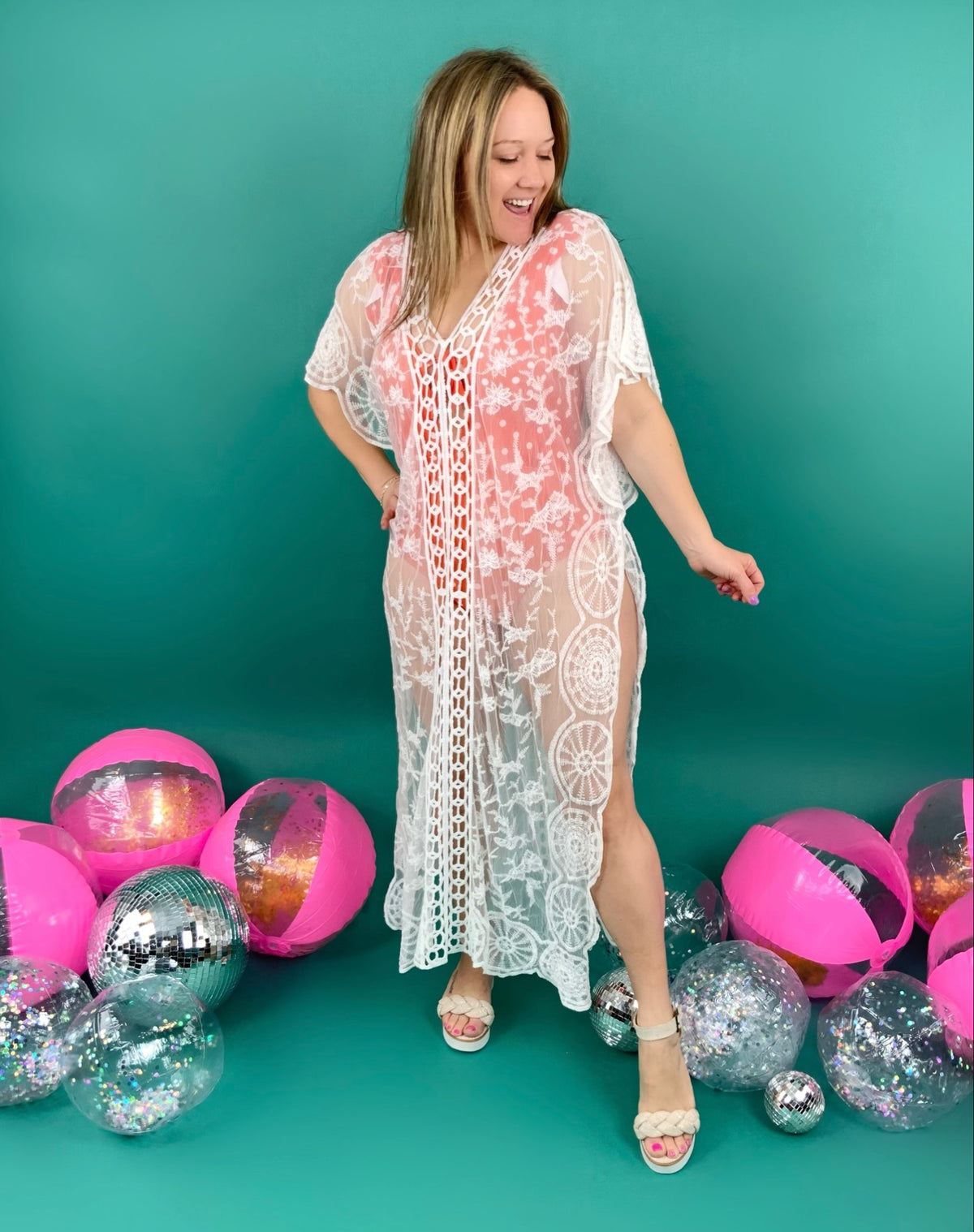 This embroidered mesh maxi cover up is definitely pure perfection! Have you seen anything so beautiful? Whether you are wearing this over your bathing suit for the beach or pool, or wearing it over your tank and shorts for some added style, this is going to have you looking incredible!