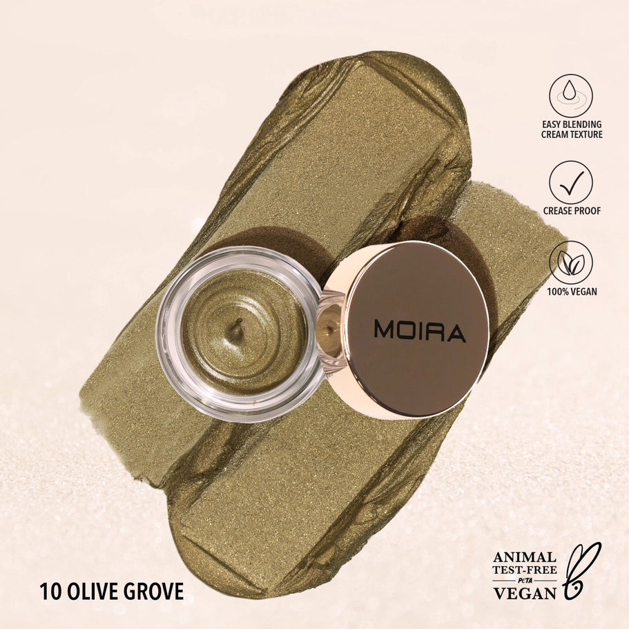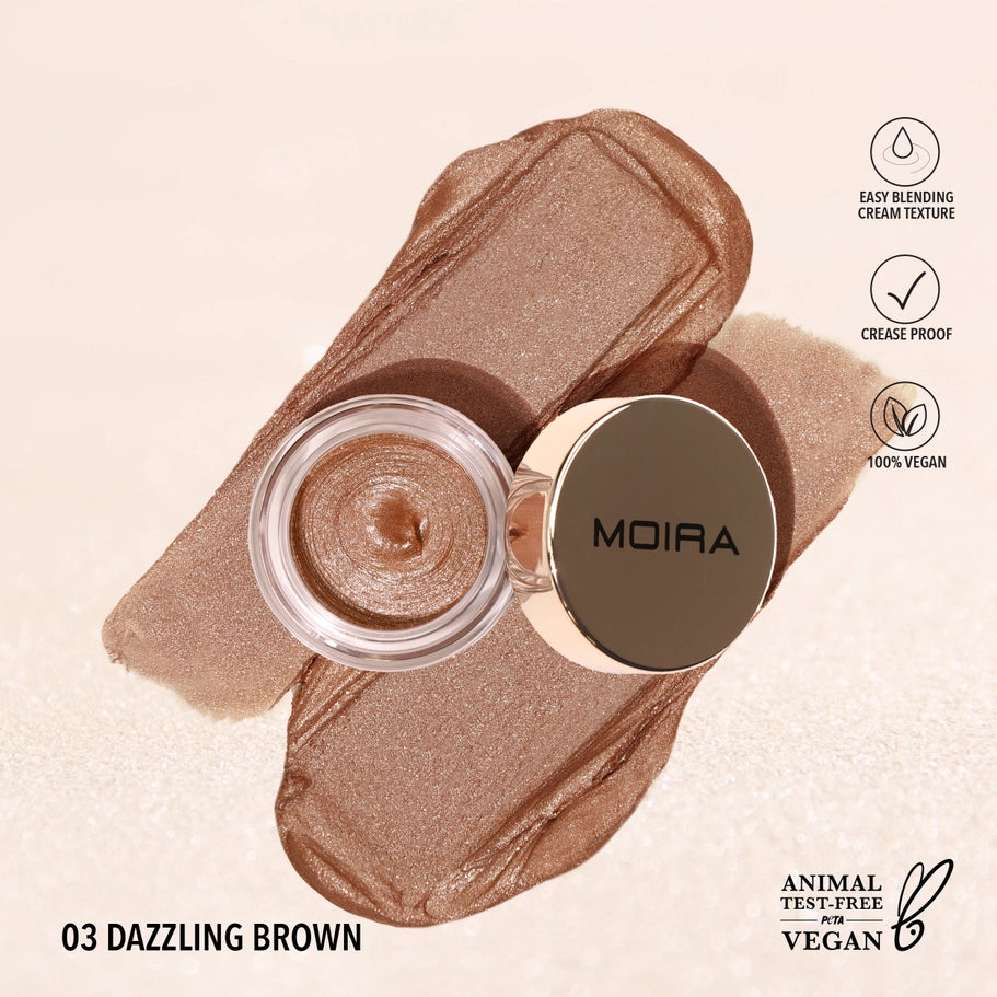 Moira Everlust Shimmer Cream Shadow is highly pigmented and features a shimmery finish that catches the light beautifully. It glides on effortlessly, providing long-lasting wear without creasing or fading using a brush or fingertips for an incandescent finish. Layer in infinite to create soft, subtle to bold and smoky eye looks. * cruelty-free * vegan * paraben free * sulfate free * phthalate free * gluten-free How to use: 1. Prime lids with moira eyeshadow primer 2. Apply shadows with flat and firmer brushes for the best color payoff and use fluffier brushes for blending. 3. Use small angled brushes to line eyes.