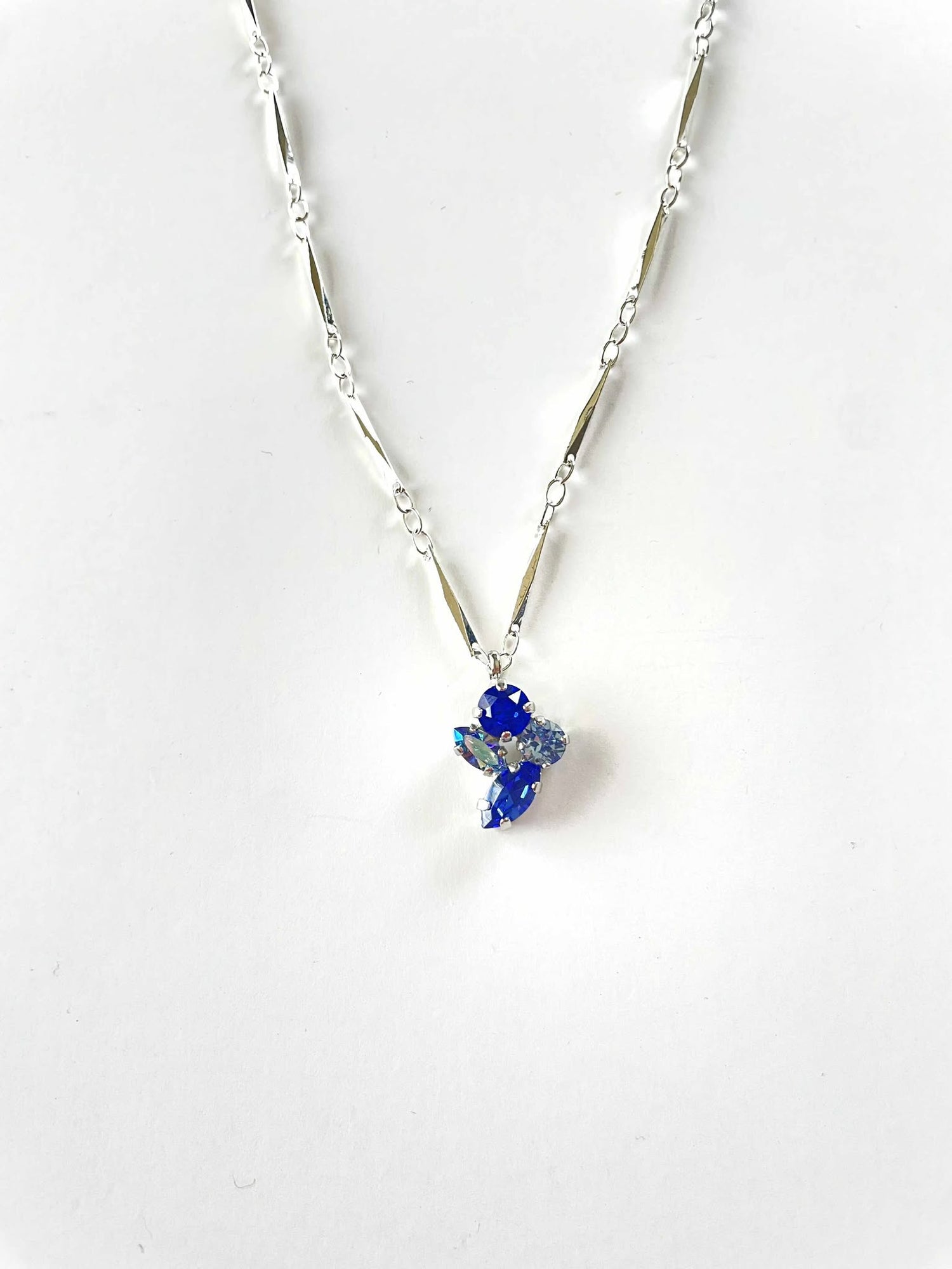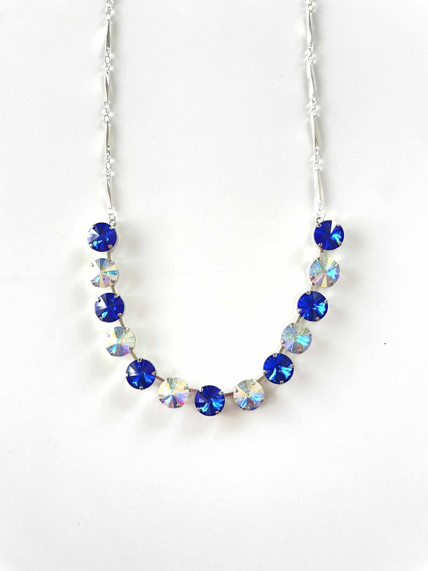 Small Bar Necklace in Blue Hues set into Shiny Silver Metal