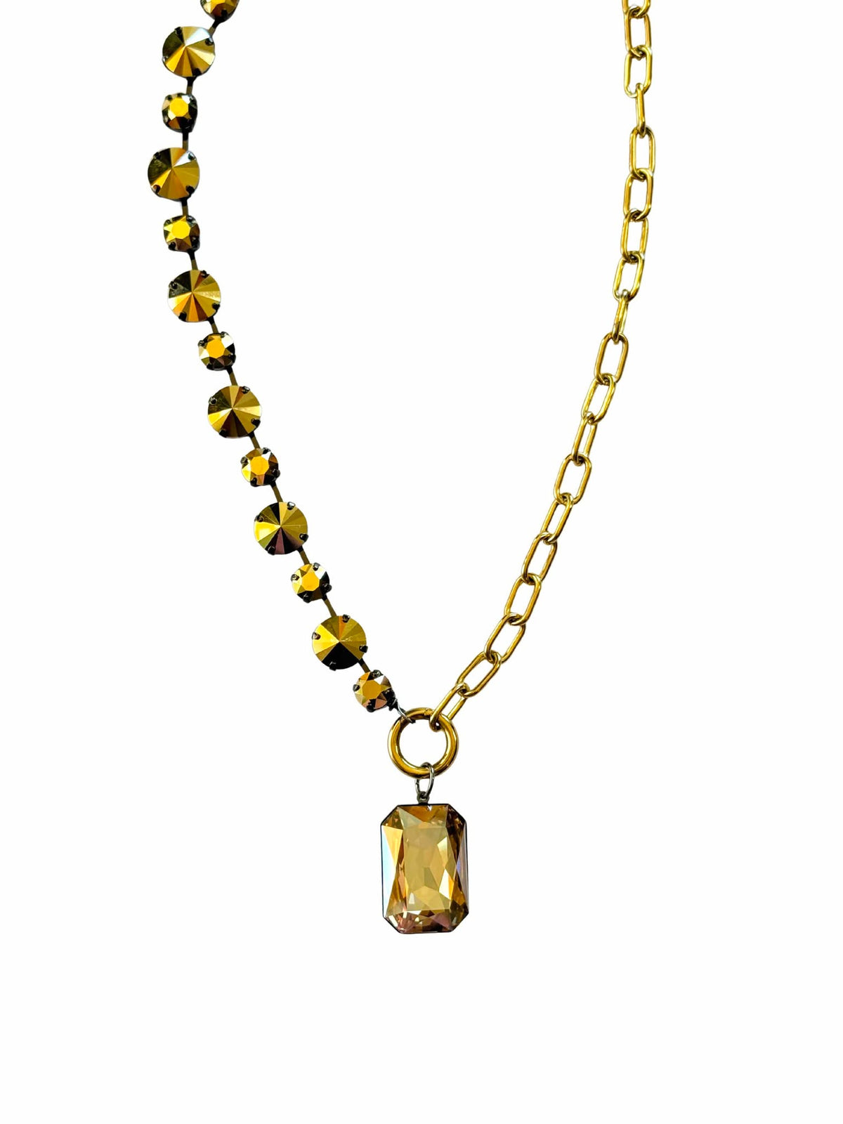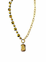 Midnight Sun Interchangeable Charm Diamonds Necklace set into Black Metal with Aurum Crystals and Gold Paperclip Chain.