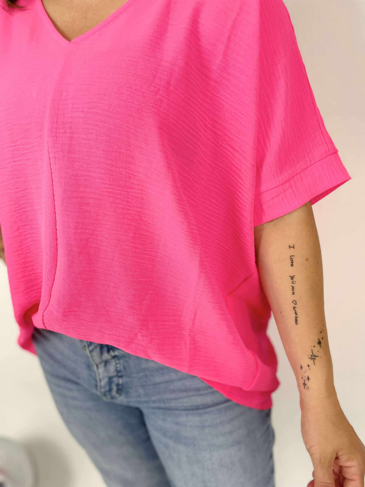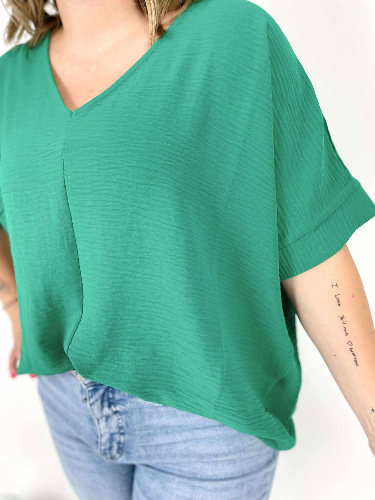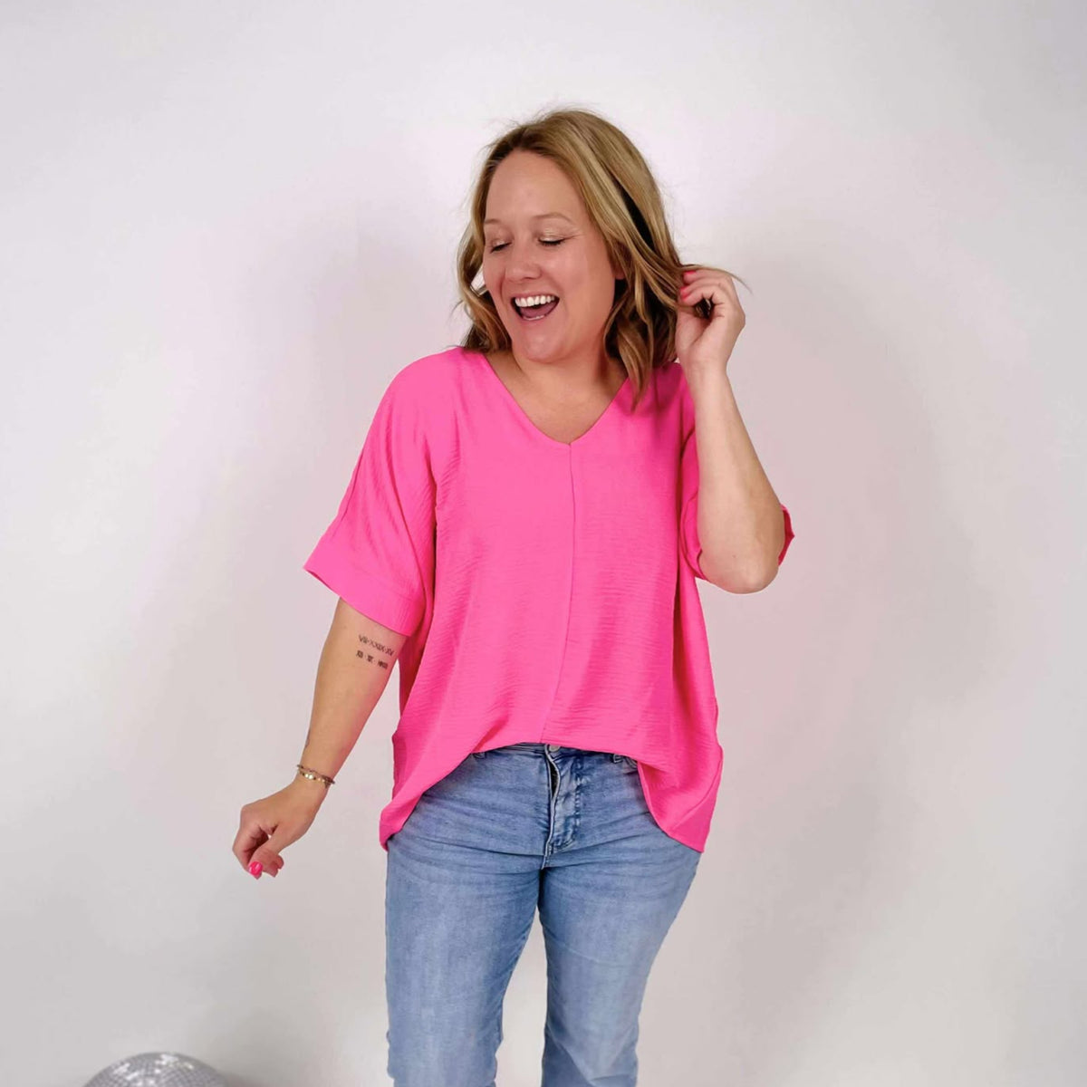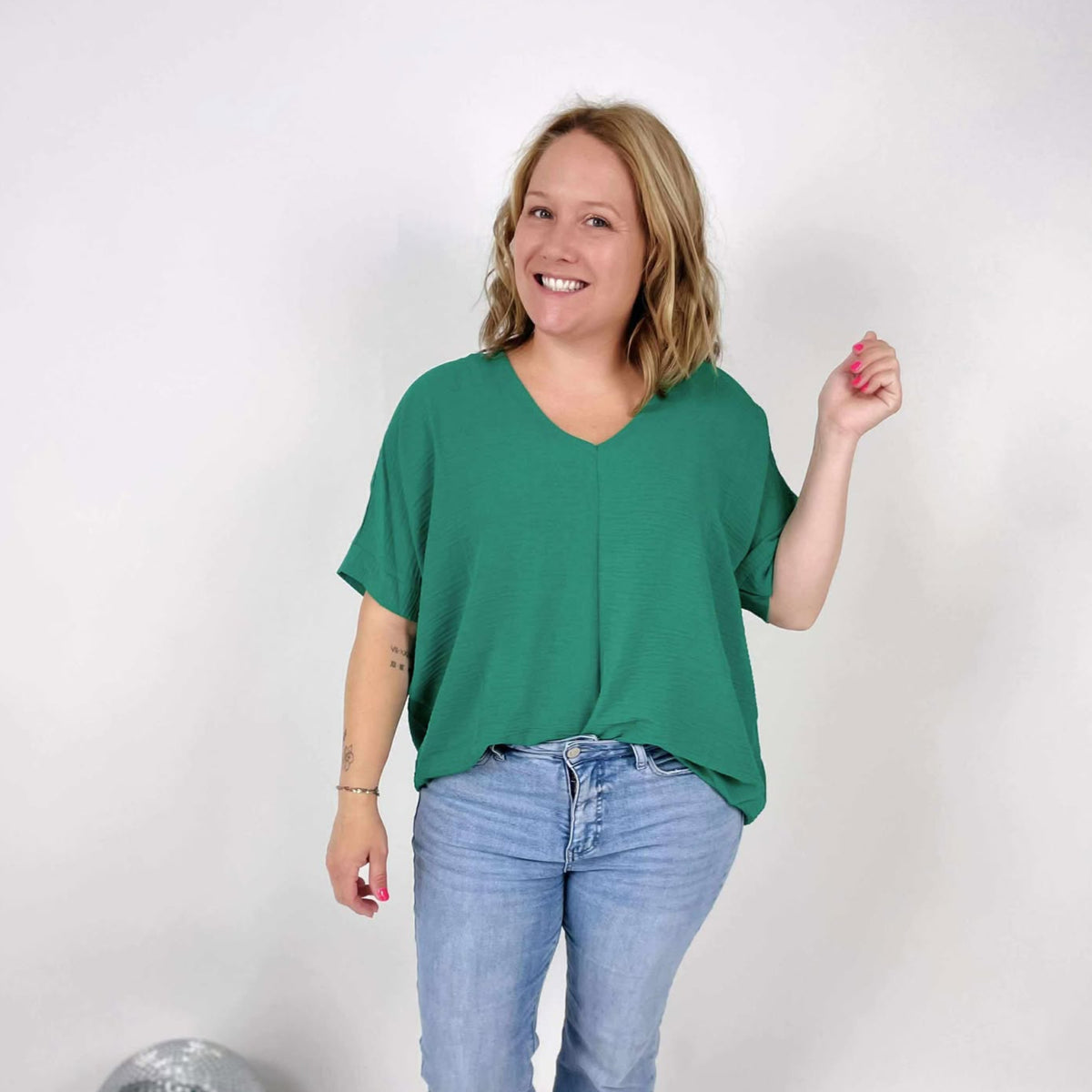 Breeze through your day in the Airloom V-Neck Top! This playful dolman short sleeve design offers a relaxed fit with breathable woven airflow fabric, keeping you cool and comfy. Available in multiple colors and sizes S to 3X, it’s perfect for mixing and matching with your favorite looks. Effortless style meets all-day comfort!