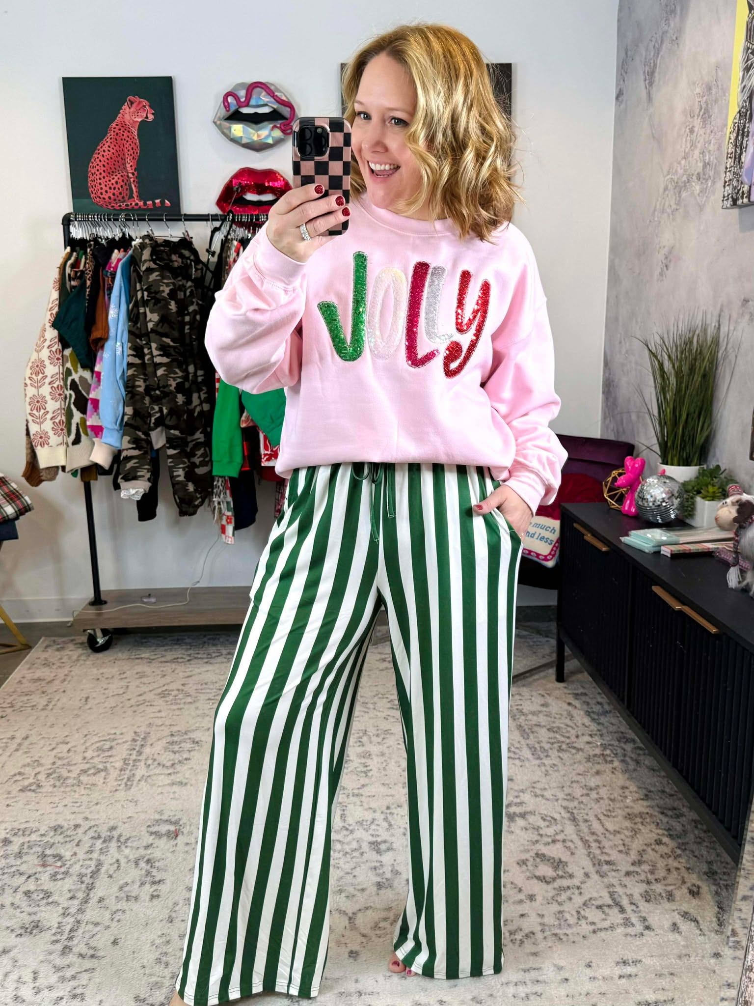 Blakeley Vertical Vibes Stripe Pants in Green {SM-2X}
