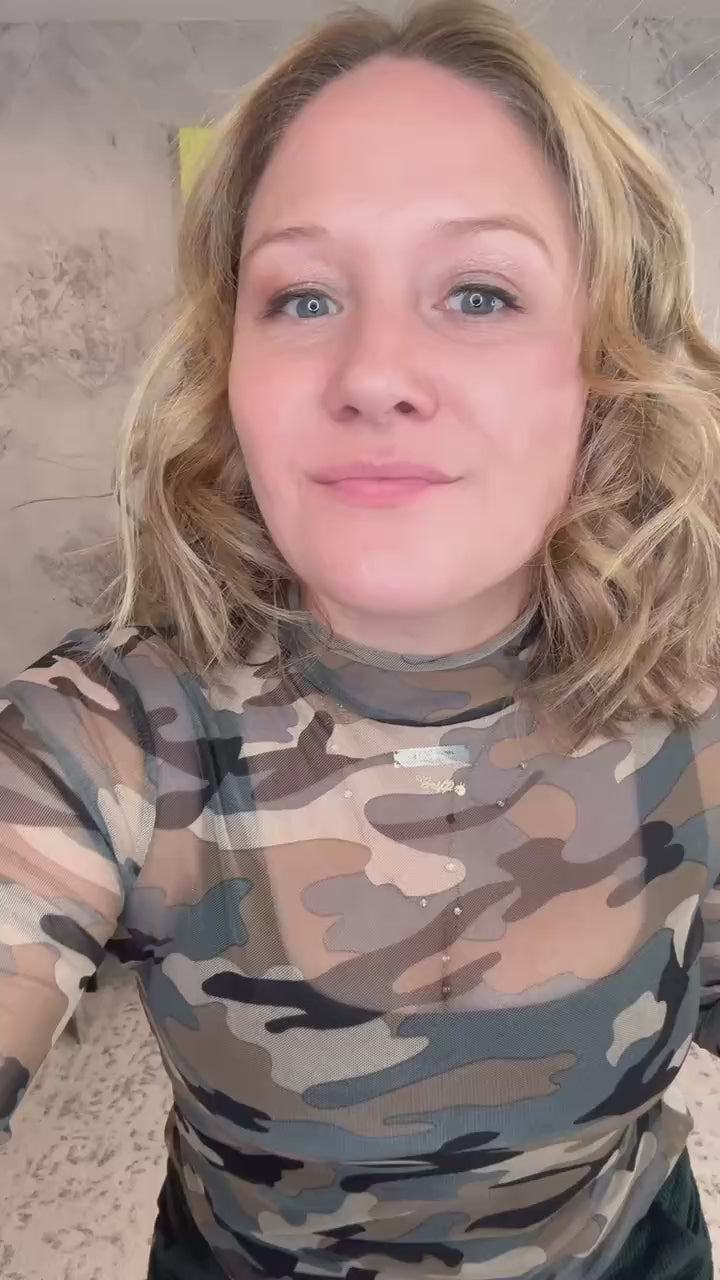 Upgrade your wardrobe with the Camo Crush Mesh Top! This stretchy mesh top boasts a trendy camo print, perfect for adding a touch of edginess to any outfit. With a mock neck and long sleeves, this top is both stylish and comfortable.