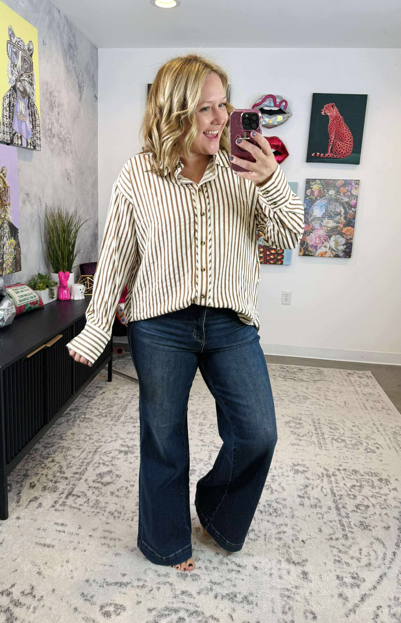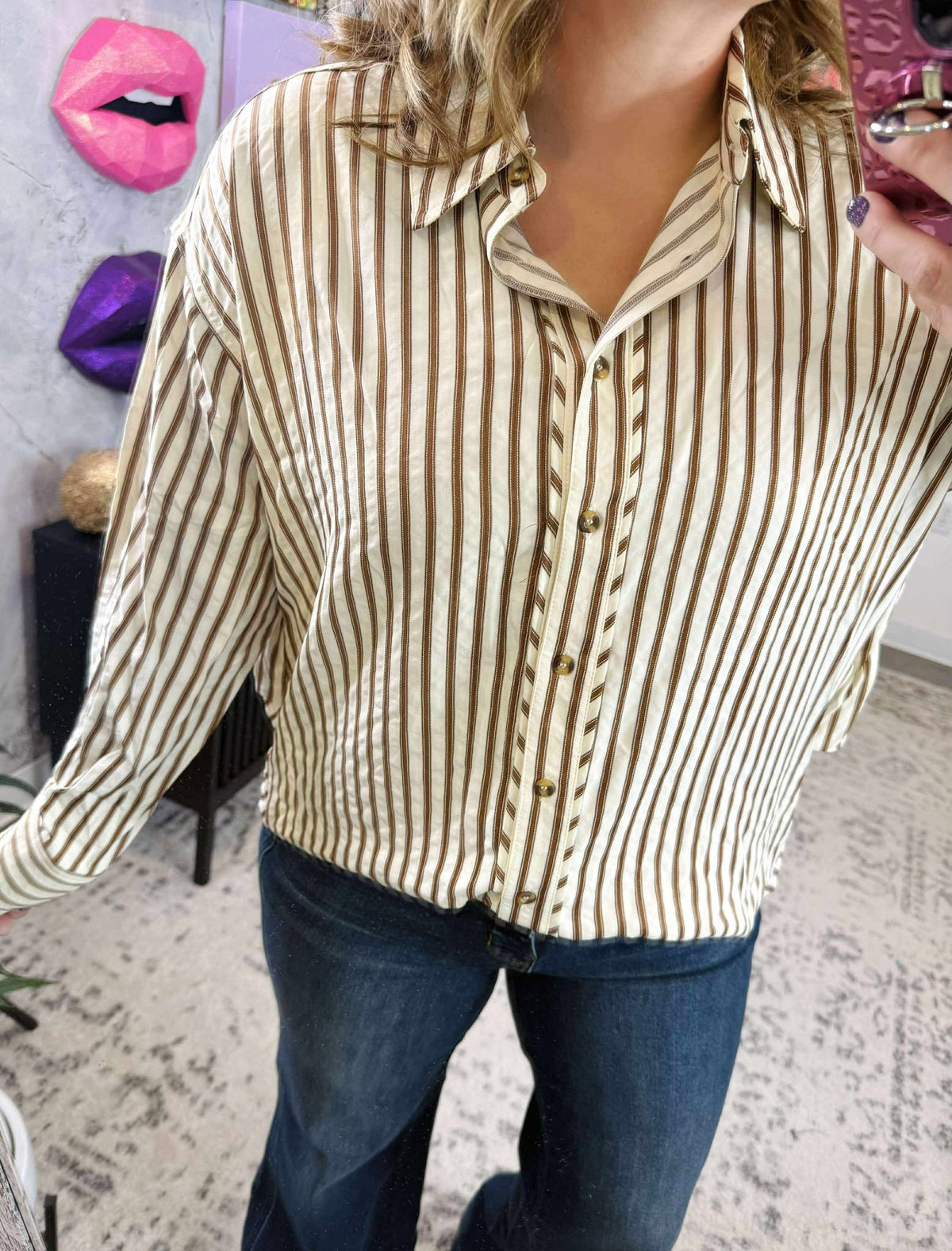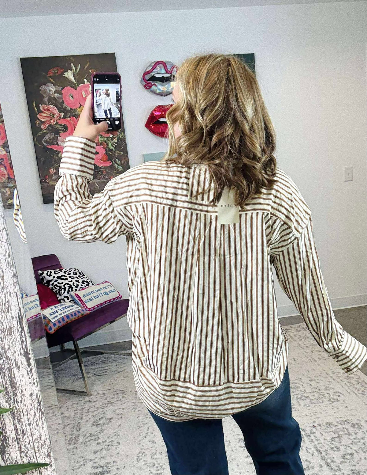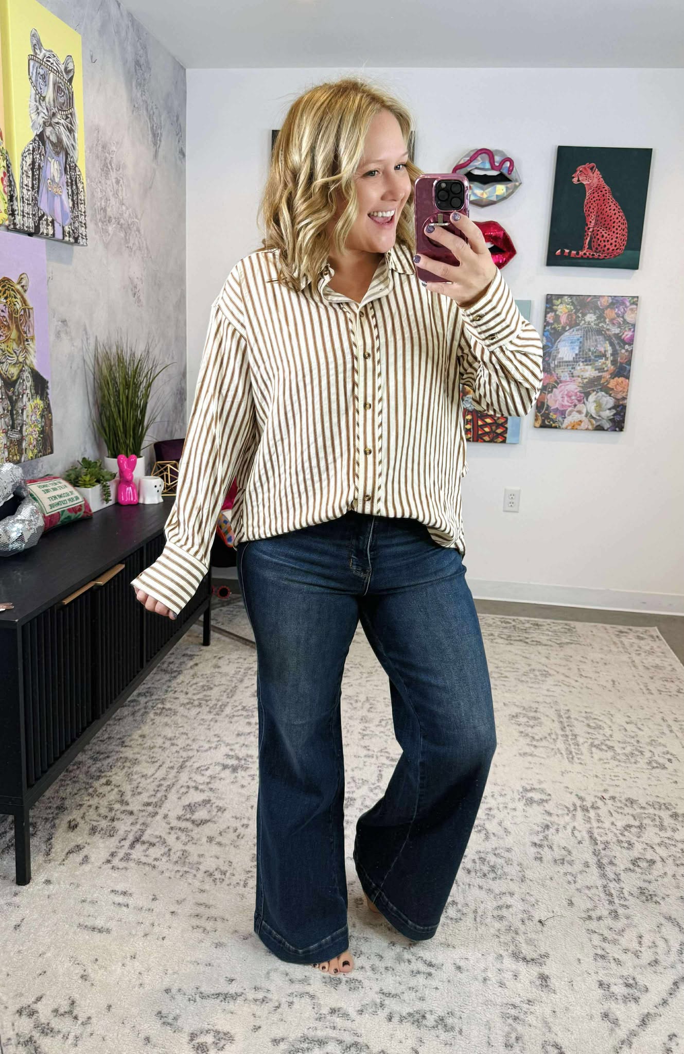 Linear Luxe Button-Up Top in Brown {S-2X}