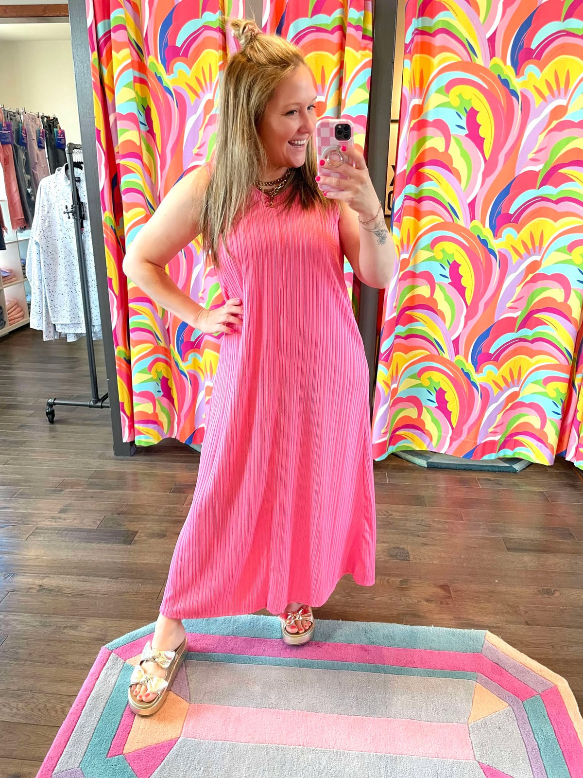 Unleash your fashion sense with the Linear Grace Dress. This sleeveless dress features a stunning maxi length with vertical raised lines, creating a unique and flattering look. Available in multiple colors, this dress is the perfect addition to your wardrobe for any occasion.