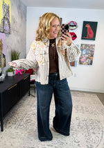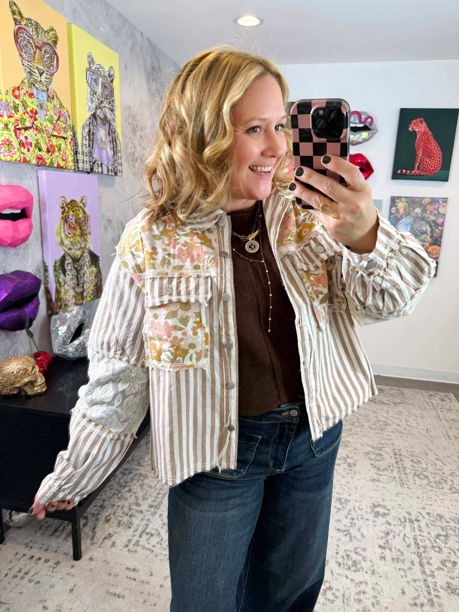 Get ready to mix up your style with this playful Mixed Vibe Top! Featuring trendy balloon sleeves and a comfortable relaxed fit, this unique denim and printed woven mix creates eye-catching style. The raw edge detailing adds a fun, unfinished vibe, while the pointed collar, front buttons, and pockets keep it fashionable. Perfect for mixing and matching with your favorite bottoms for an effortlessly cool look!