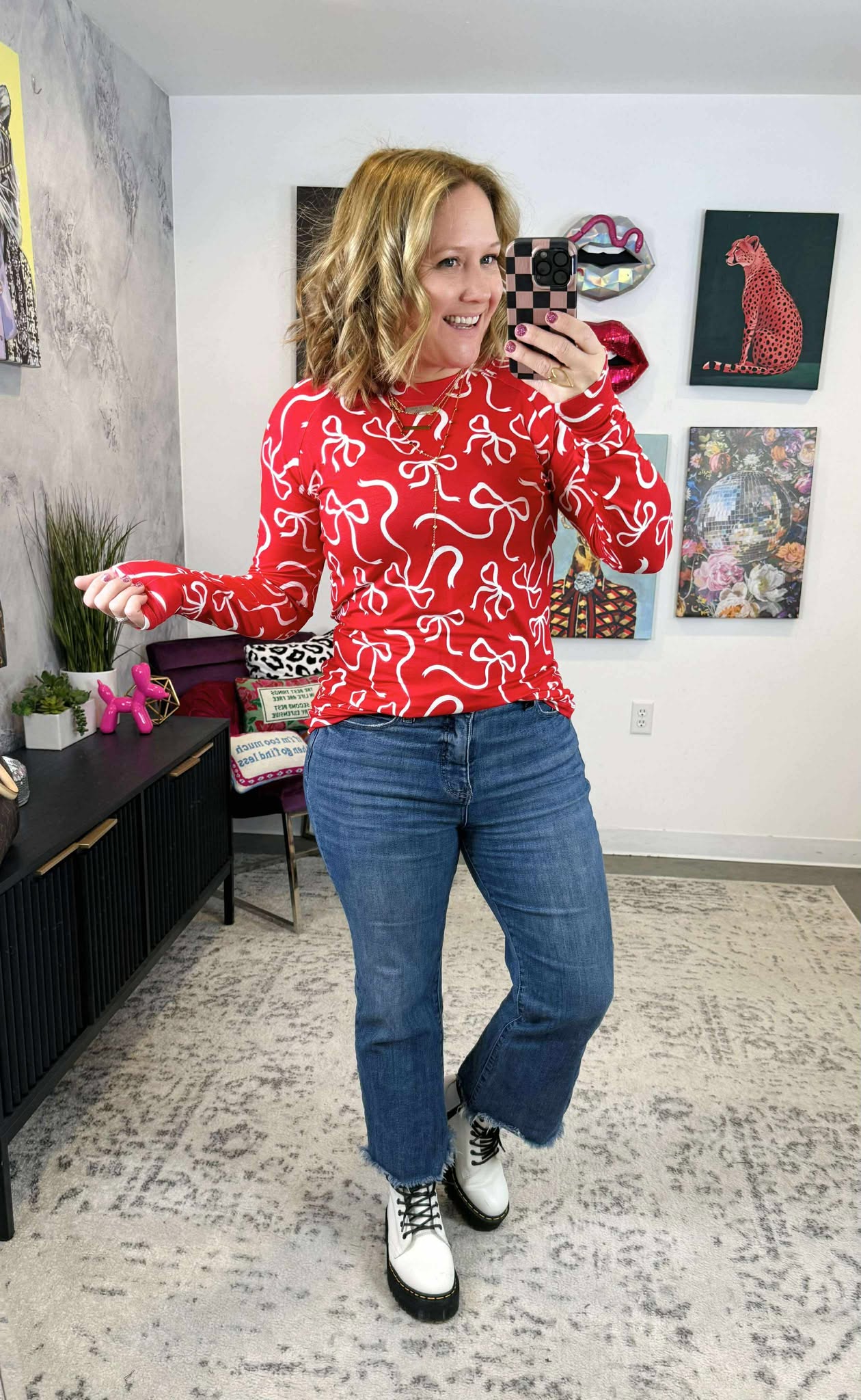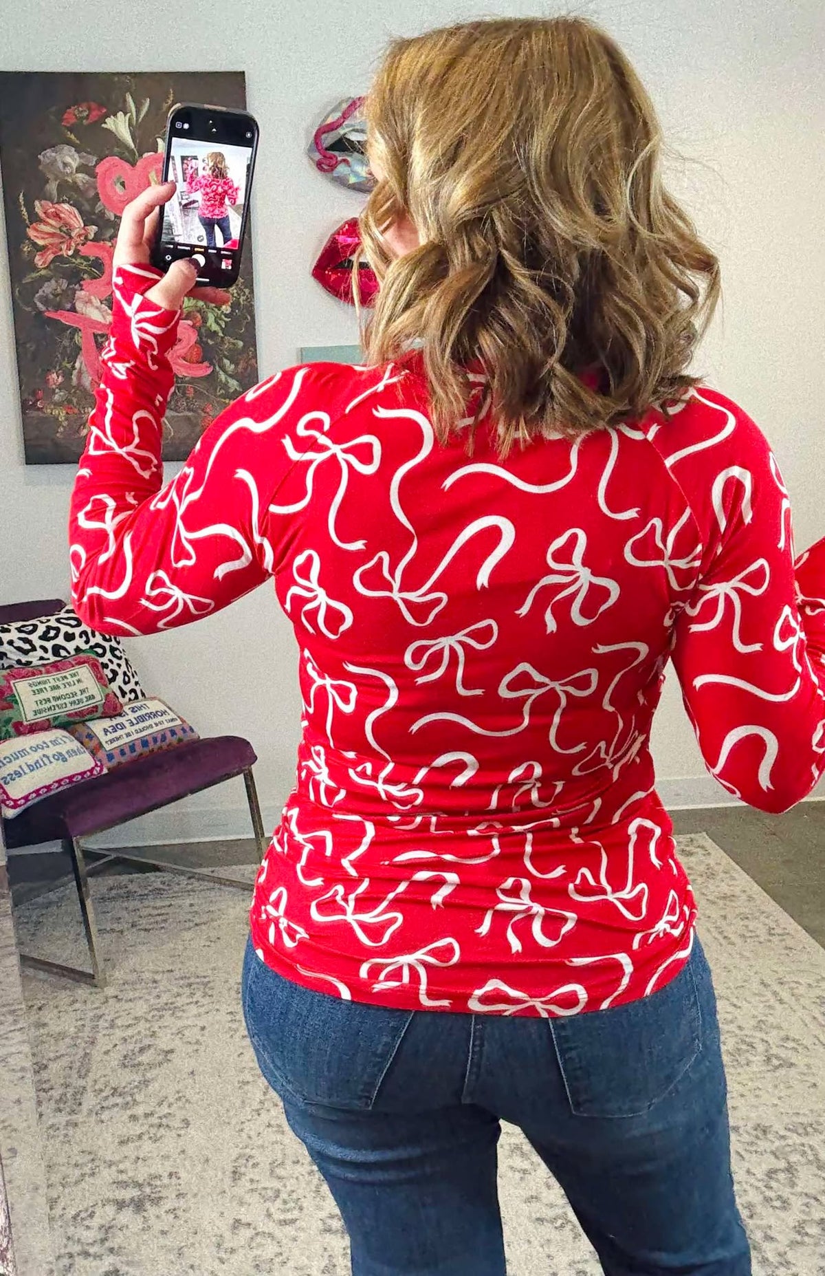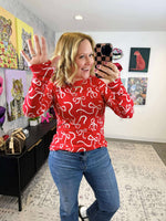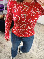 MM Blair Long Sleeve Top - Red & White Ribbons {S-3X}