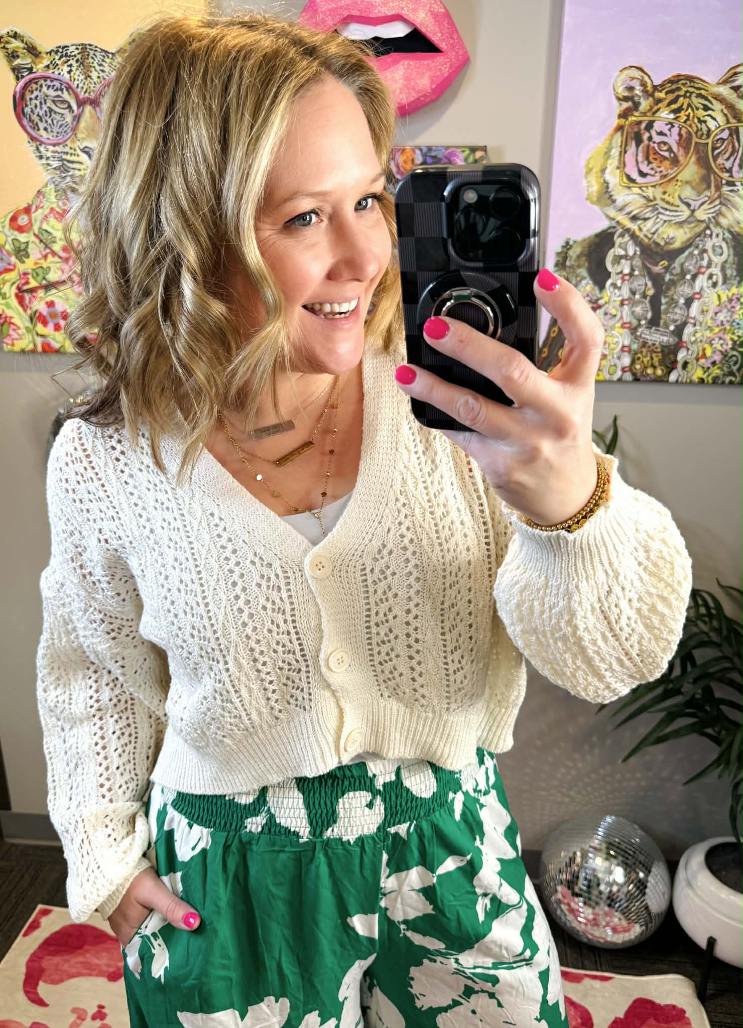 Layer up your spring style with the Callie Cropped Cardigan. This open knit design pairs effortlessly over dresses for a breezy, put-together look that transitions from day to night. The cropped silhouette hits just right, creating a flattering shape while keeping things light and airy. Perfect for those in-between seasons when you need just a touch of warmth without the bulk. Throw it on and instantly elevate your favorite dress.