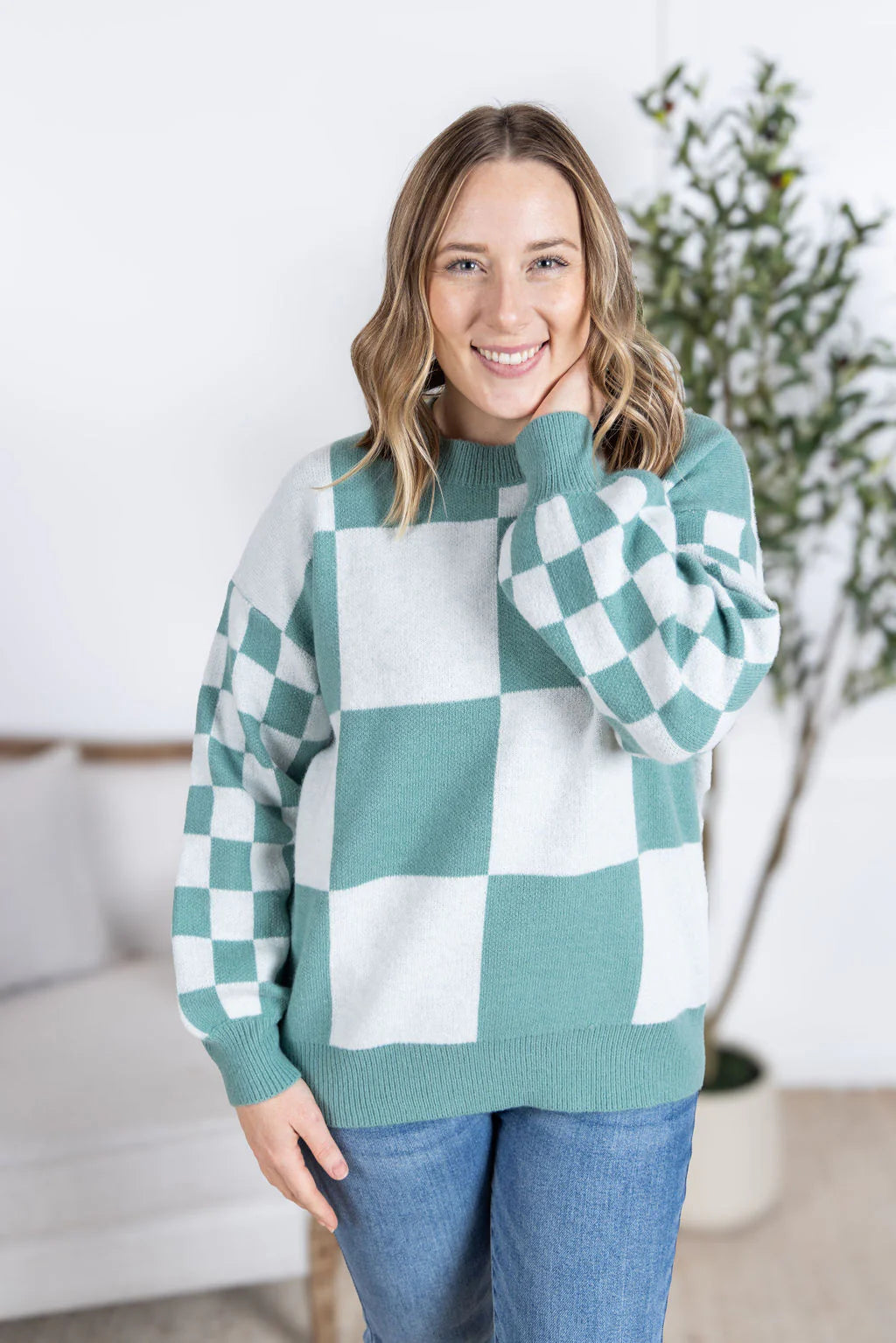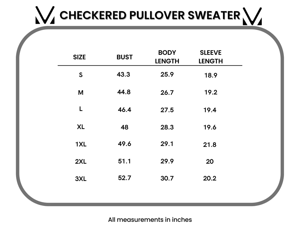 Get ready to turn heads with this quirky Checkered Pullover Sweater. With slight bubble sleeves and a crew neck, this cozy sweater features multiple checkered patterns for a fun and playful look. Stay warm and stylish in this must-have statement piece!