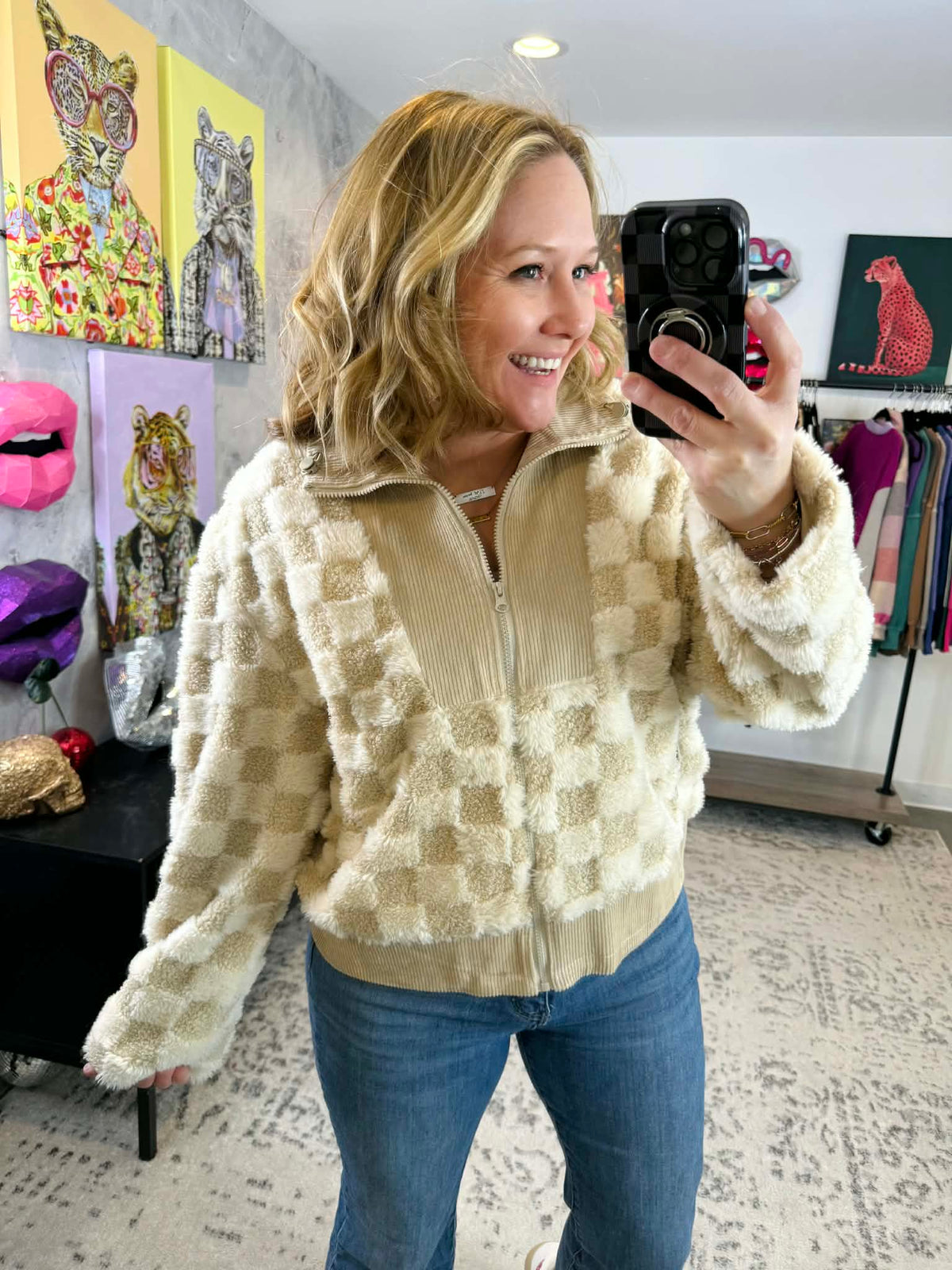 Cozy Checker Sherpa Jacket {S-XL}