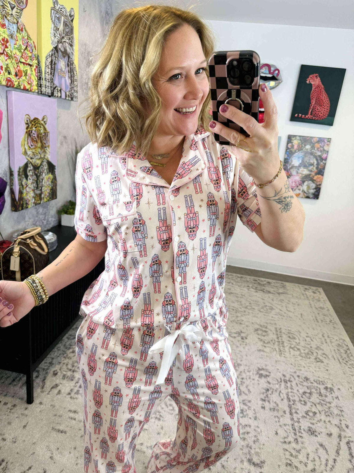 Get ready for a cozy night's sleep in our Nutcracker Button Down Pajama Set. Made with buttery soft fabric, you'll feel like you're sleeping on a cloud. Stay stylish even in your sleep with this playful and comfortable set.