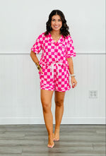 Get cozy in this button-down pajama set! Made with super soft fabric, this set features a functional button-down collared top with pocket and comfy elastic waist shorts with pockets too. Plus, add a touch of luxury with the satin drawstring. Relax in style and comfort with these playful pajamas. (Perfect for lazy Sundays and Netflix binges!)