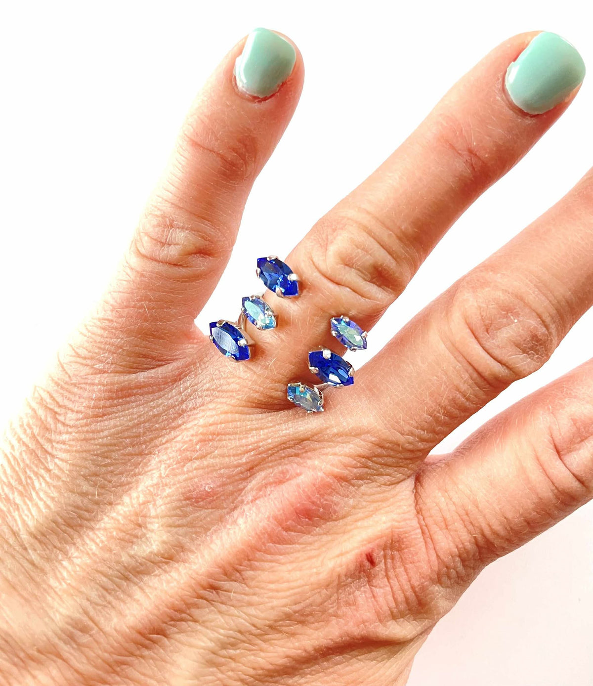 Navette Triple Open Top Ring in Blue Hues set into Silver Plated Metal