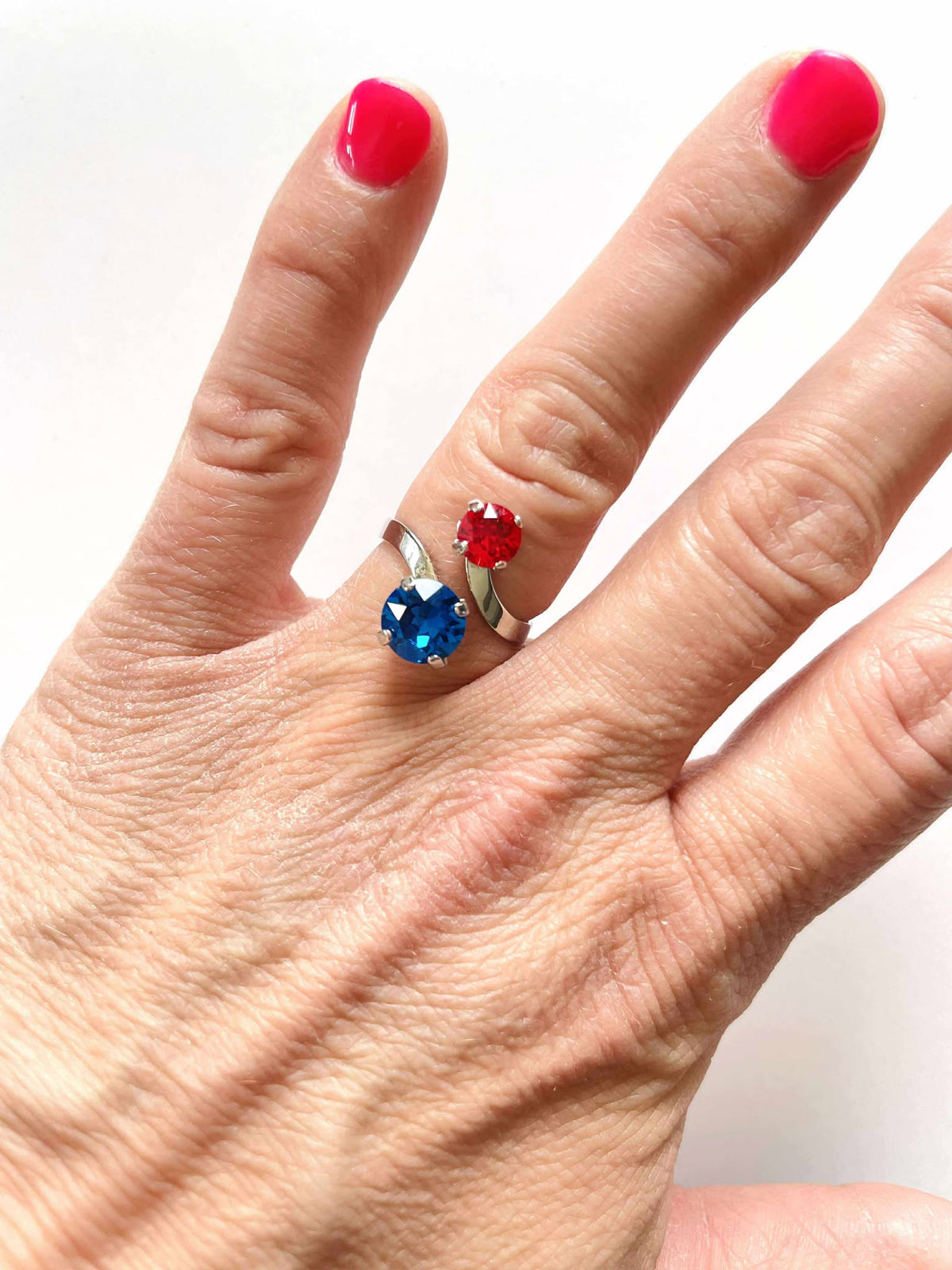 Wrap Ring in Capri Blue x Light Siam set into Shiny Silver Metal