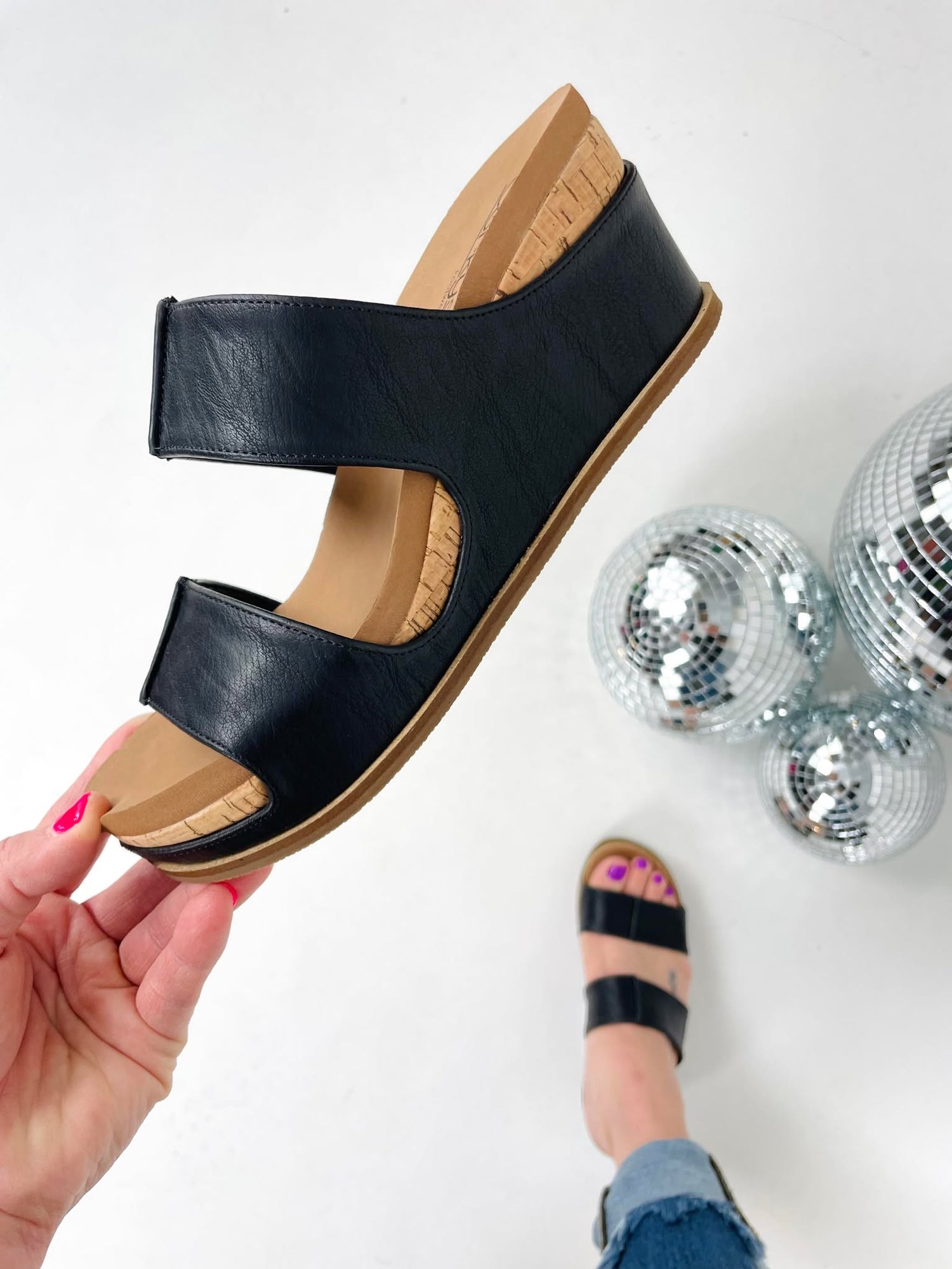 Get ready to dance the night away in style with Corkys - ALL NIGHTER - Black wedges! These strappy beauties feature a super comfortable foam footbed and espadrille details, making them perfect for all-night comfort. Don't just stand there, grab a pair and be the life of the party!