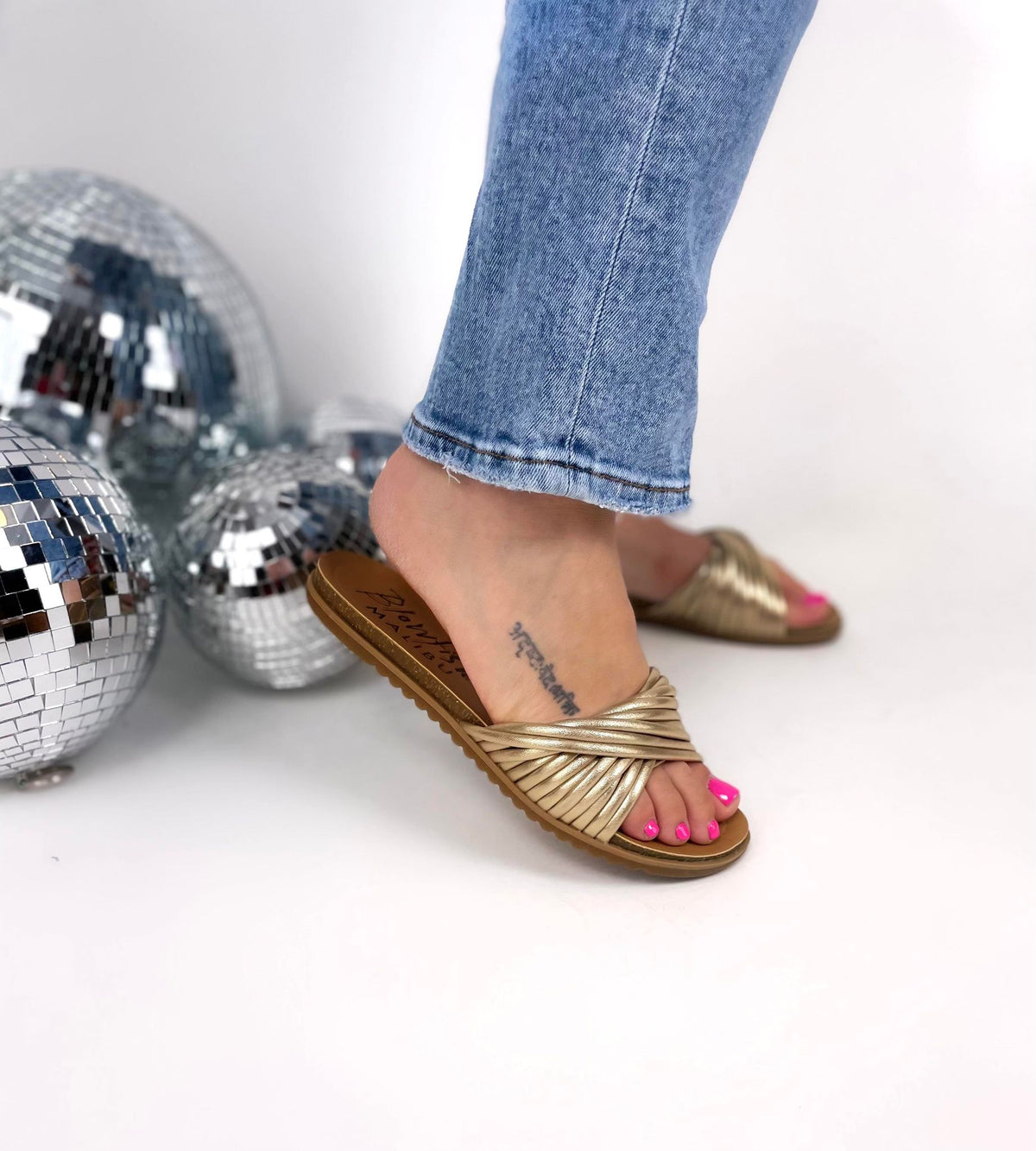 - Enjoy sunny days at the beach or casual walks around the city in absolute comfort wearing the uber-stylish Blowfish® Malibu Malu Flats. The slides come with a soft tubular faux leather upper, faux leather lining, and faux leather BLOOM foam cuhsioned insole. The sleek silhouette of the flats and twisted strap detail gives it a stylish update.