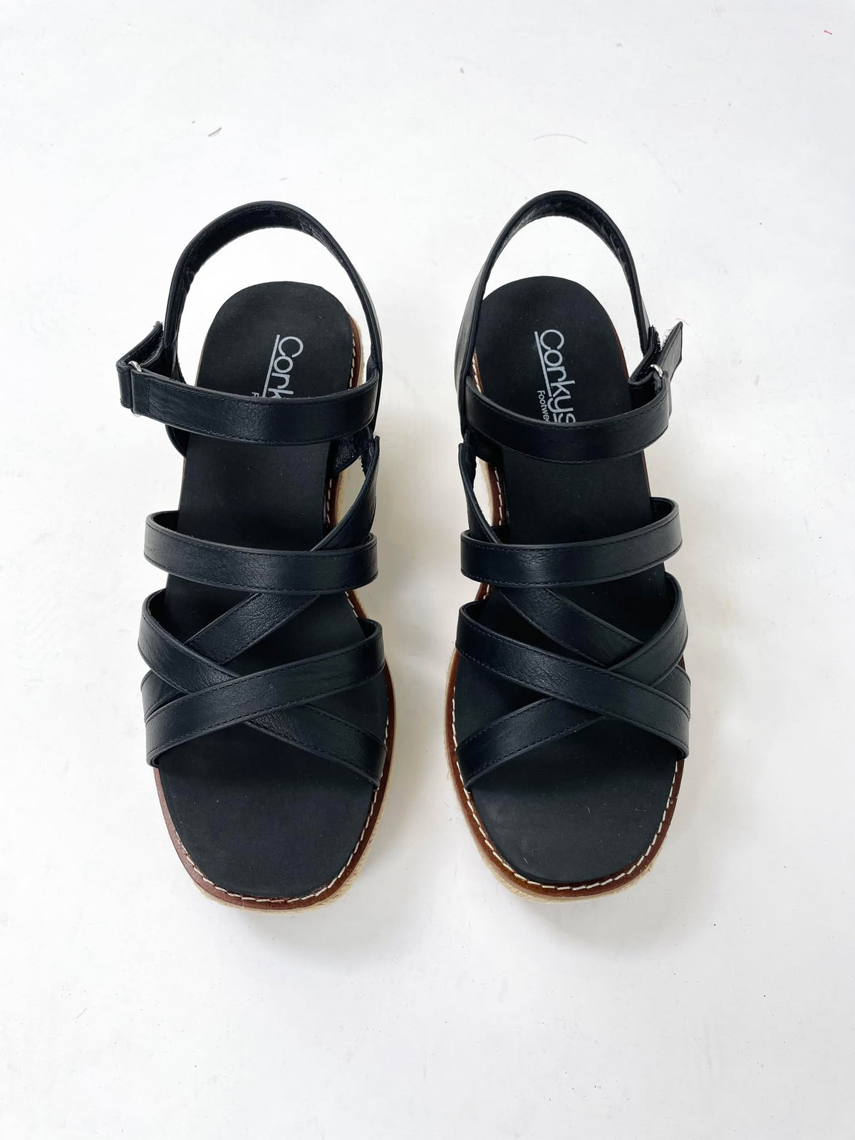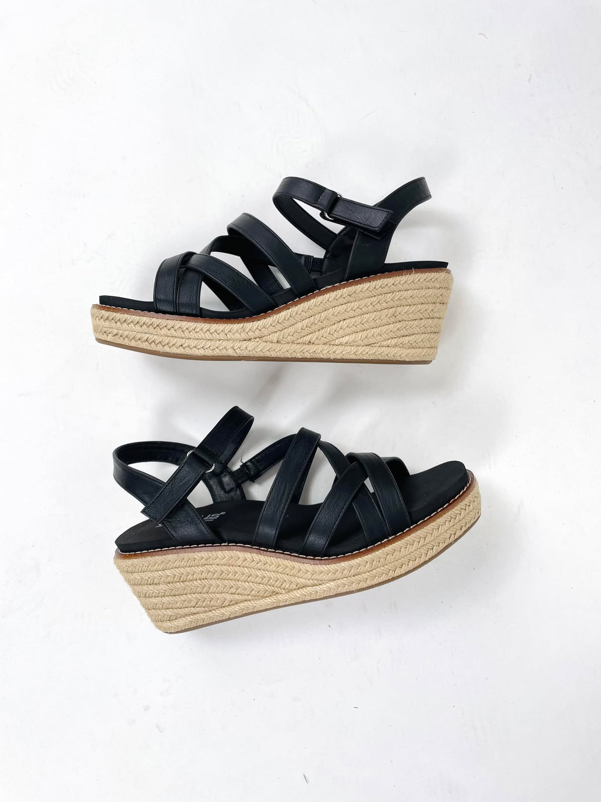 Get ready to dance the night away in style with Corkys - ALL NIGHTER - Black wedges! These strappy beauties feature a super comfortable foam footbed and espadrille details, making them perfect for all-night comfort. Don't just stand there, grab a pair and be the life of the party!