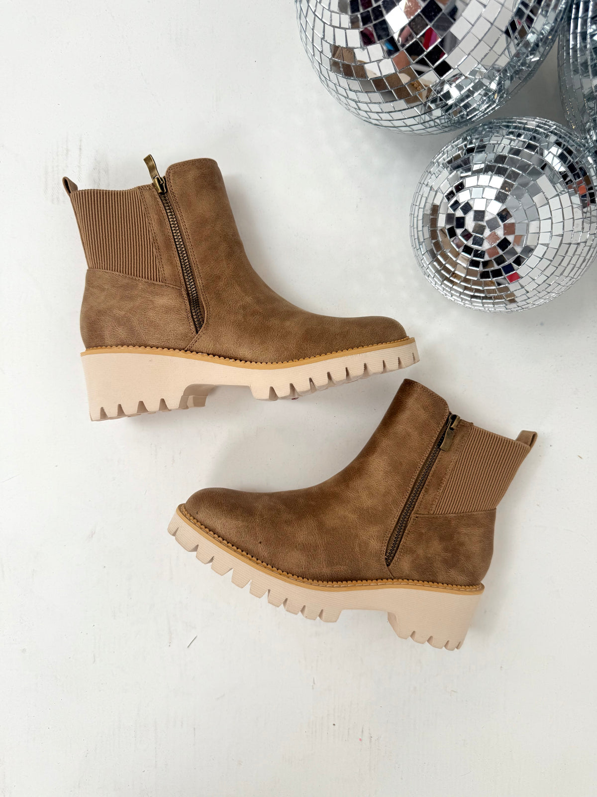Step up your adventure game with the Corkys TAKE A HIKE in sleek taupe! These boots feature a fun round toe and an easy side zipper for quick on-and-off. Slip into their super comfortable footbed and get ready to roam all day with a smile. Perfect for those who want style and comfort to hike hand in hand!