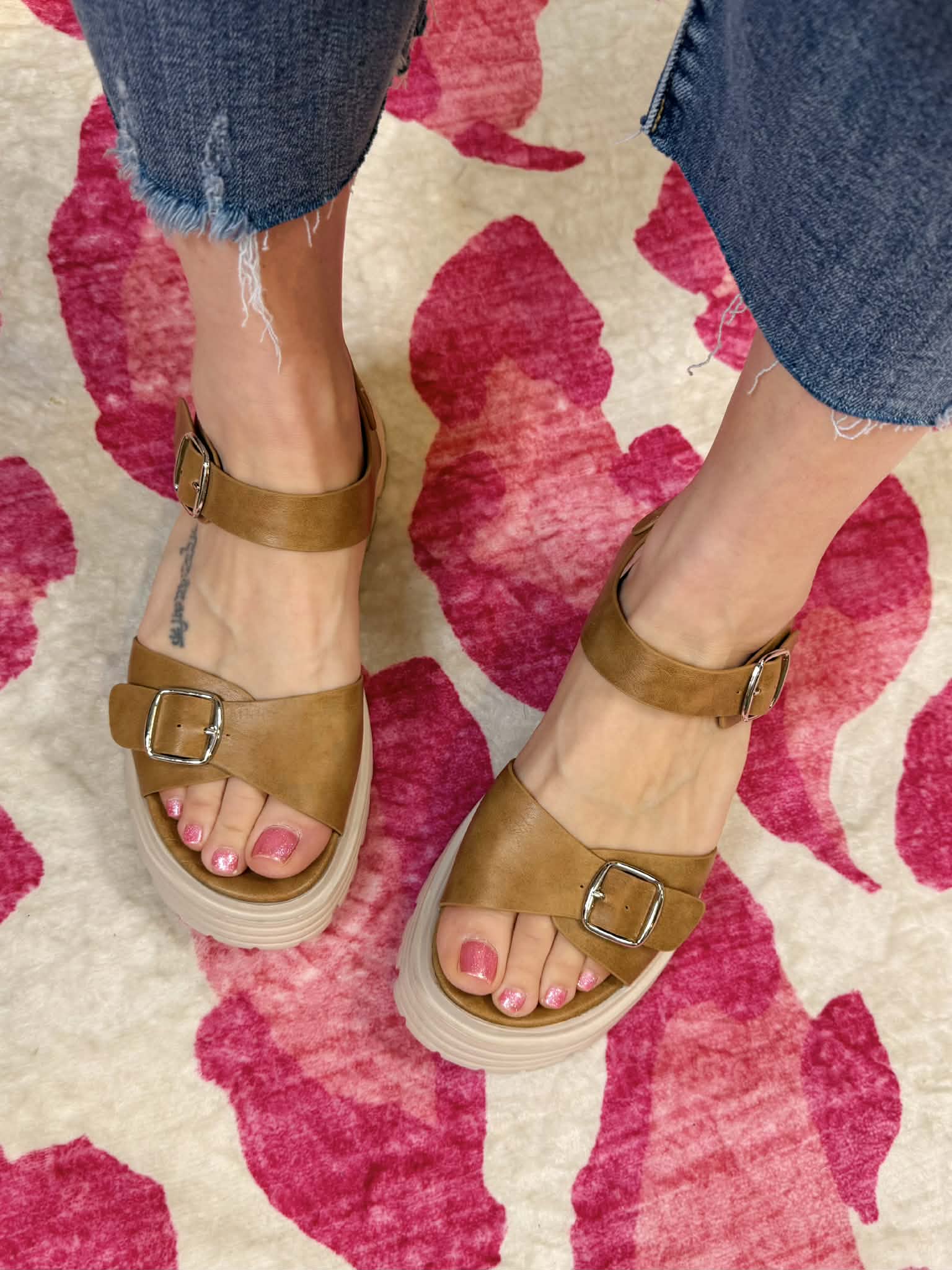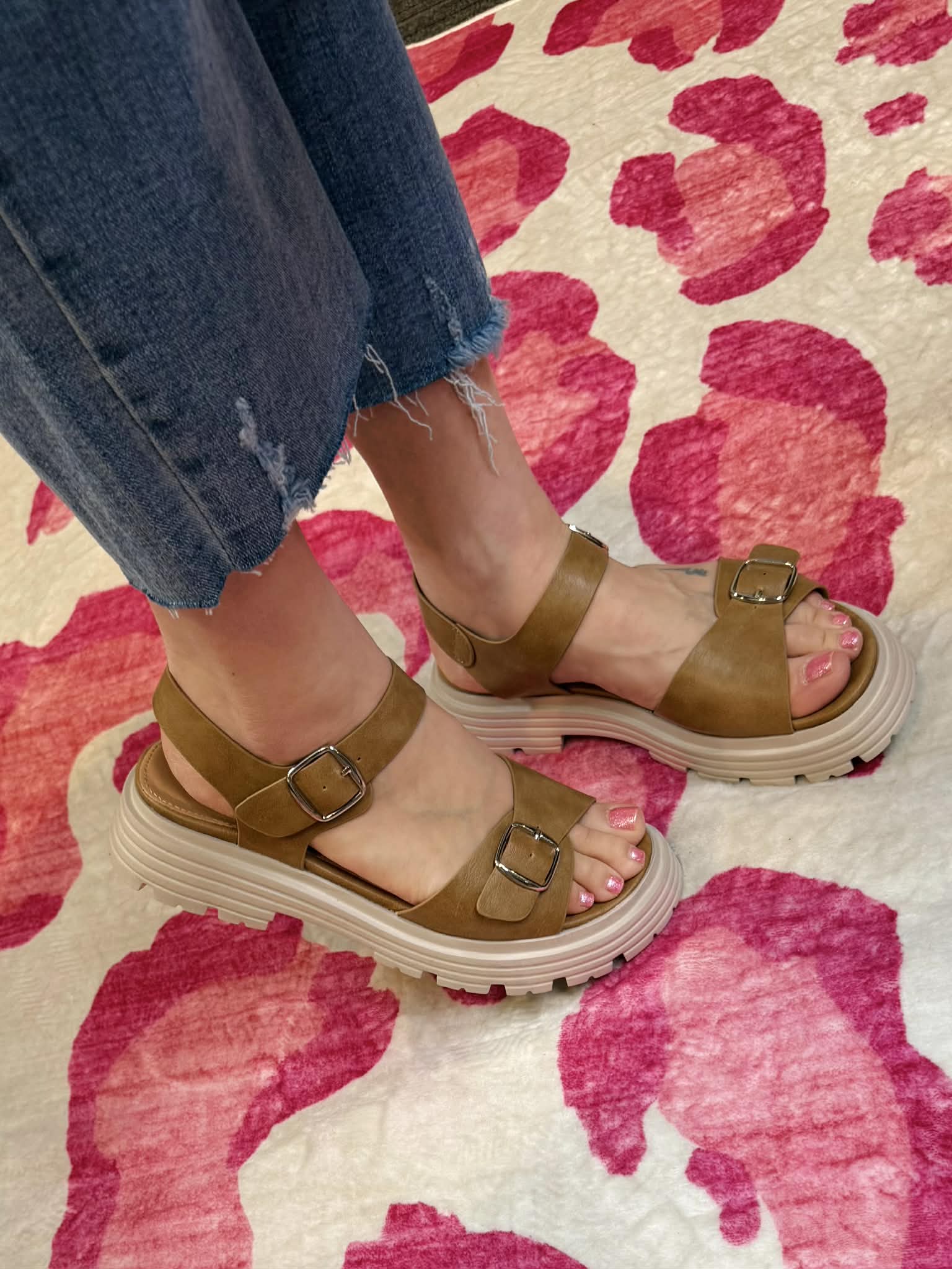 Rock your vibe with the Corkys That's Just Me Sandal in Caramel—where sass meets sole! This playful style features a 2-inch chunky heel that strikes the perfect balance between statement-making and wearable. Dual adjustable buckle straps (one across the top, one at the ankle) let you customize your fit while keeping things looking sharp. The cushioned insole keeps your feet happy through all-day adventures, while the grippy lug outsole handles whatever comes your way. With its open-toe design and modern flair, this sandal pairs effortlessly with sundresses, jeans, or tailored pieces. From weekend brunches to spontaneous outings, the That's Just Me Sandal is your go-to for looking polished without trying too hard.