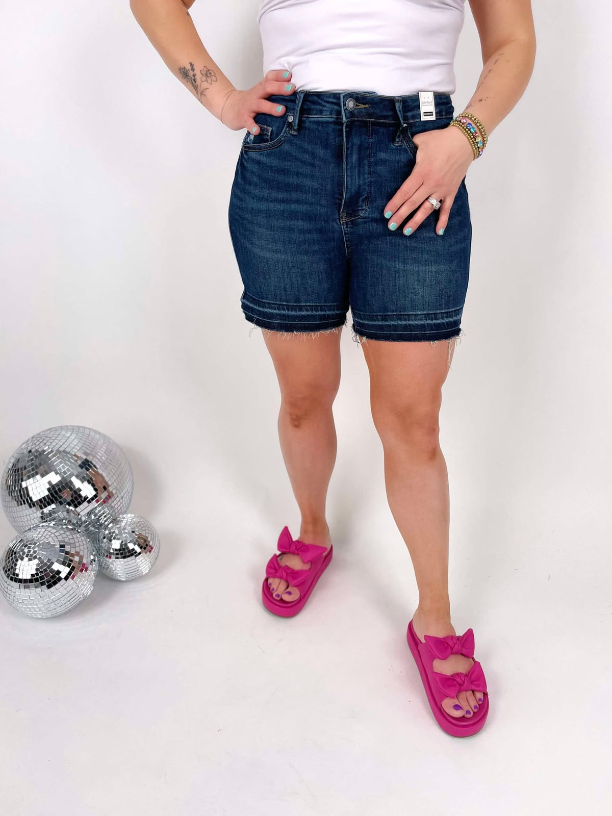 Unleash your inner beach babe with Judy Blue's Coastal Cool Shorts! These quirky high-rise shorts not only provide tummy control, but also feature a trendy destroyed hem for added style. Perfect for any summer adventure, these shorts will keep you looking and feeling cool.