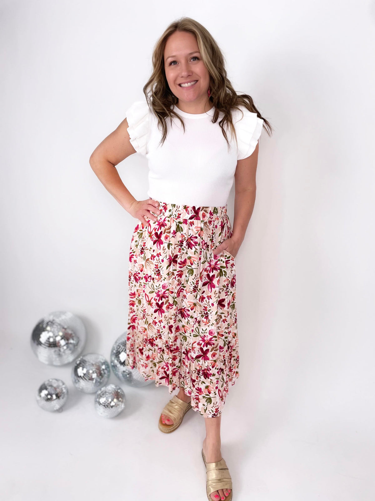 Be a dream in this charming Little Dream Skirt! Boasting an all-over floral print, elastic waist, and shirred hem, you’ll feel comfy and fab all day long. Lightweight knit fabric ensures you'll never have to sacrifice style for comfort. Picture perfect for any daydreamer!