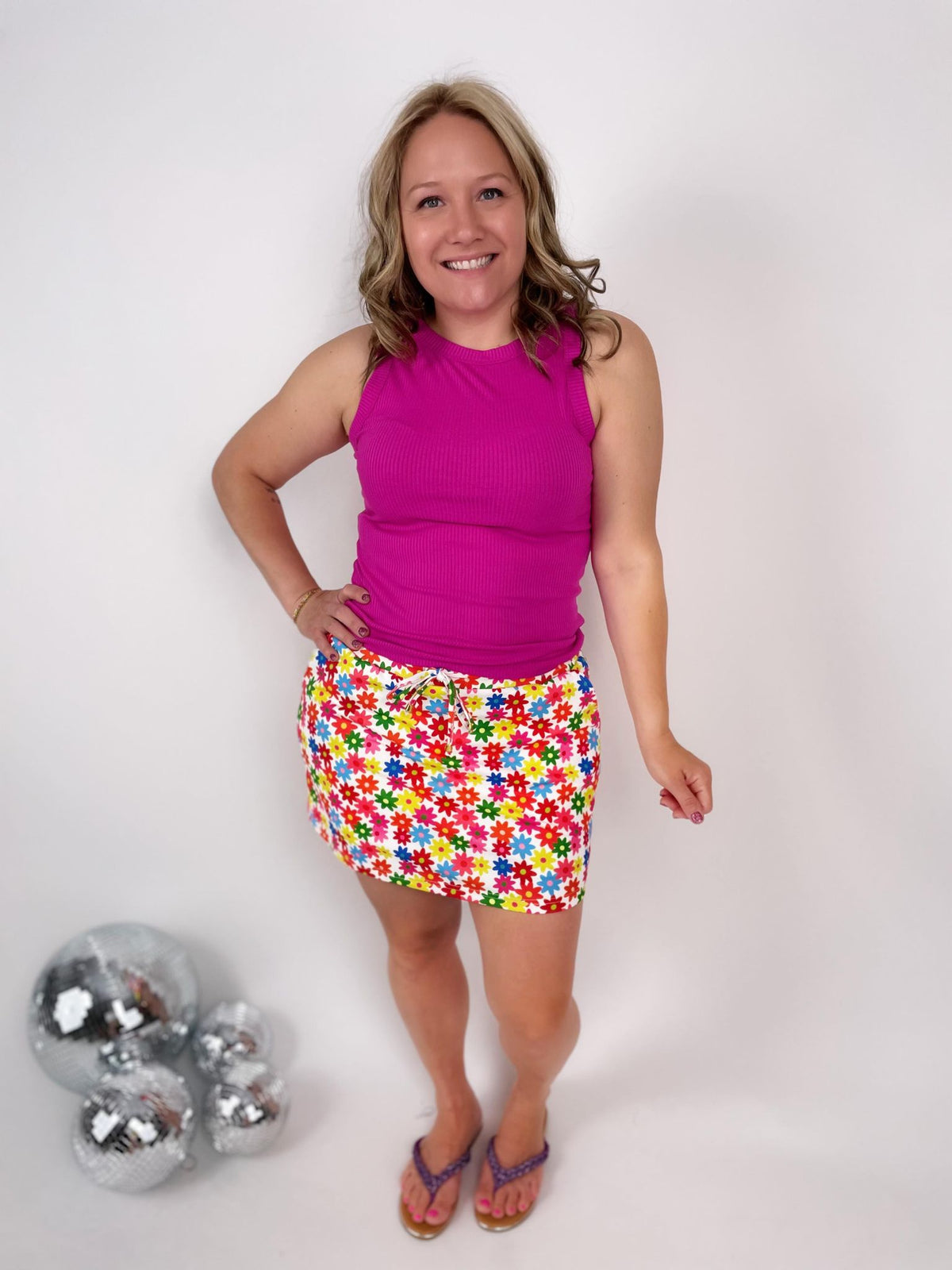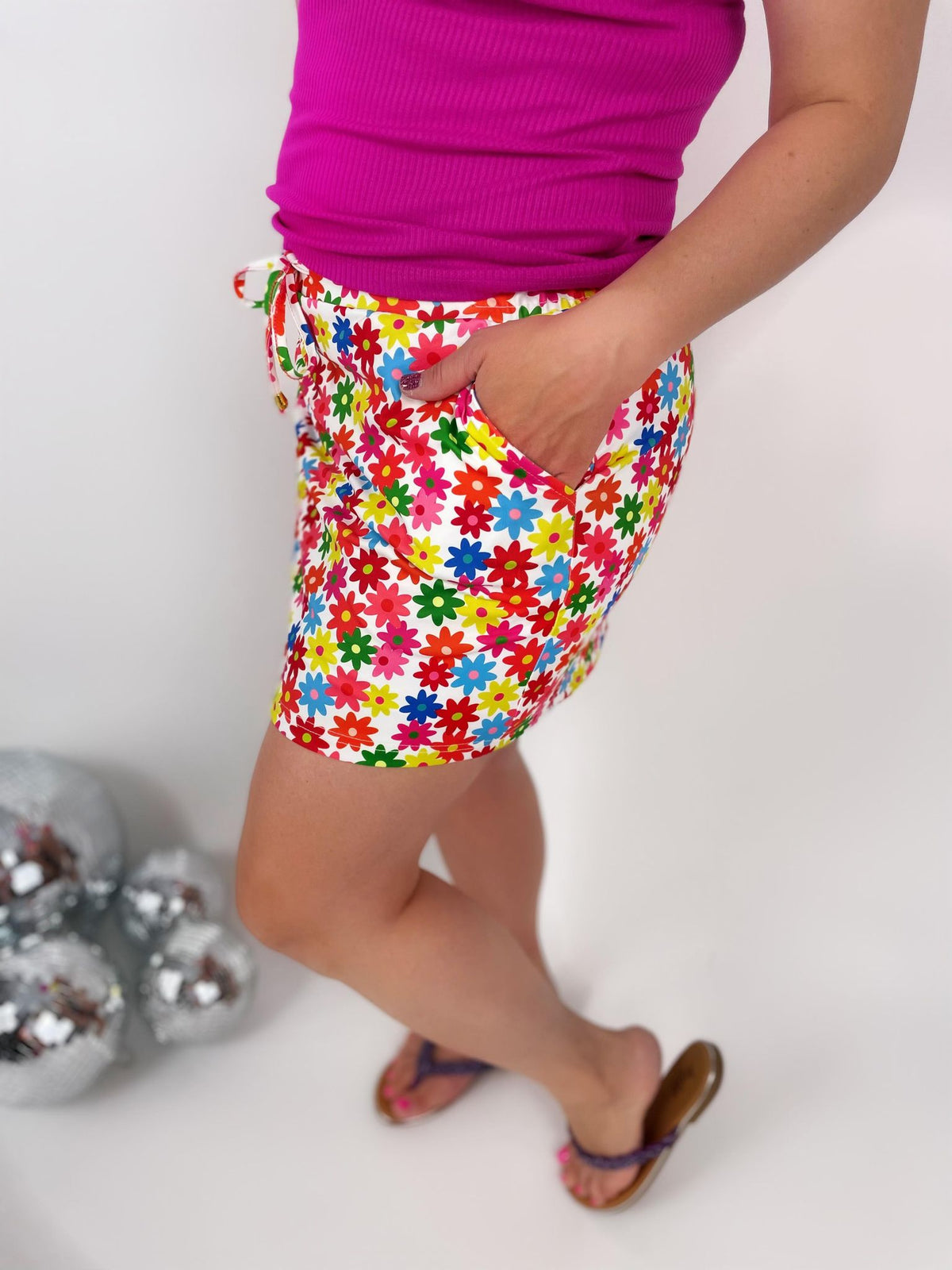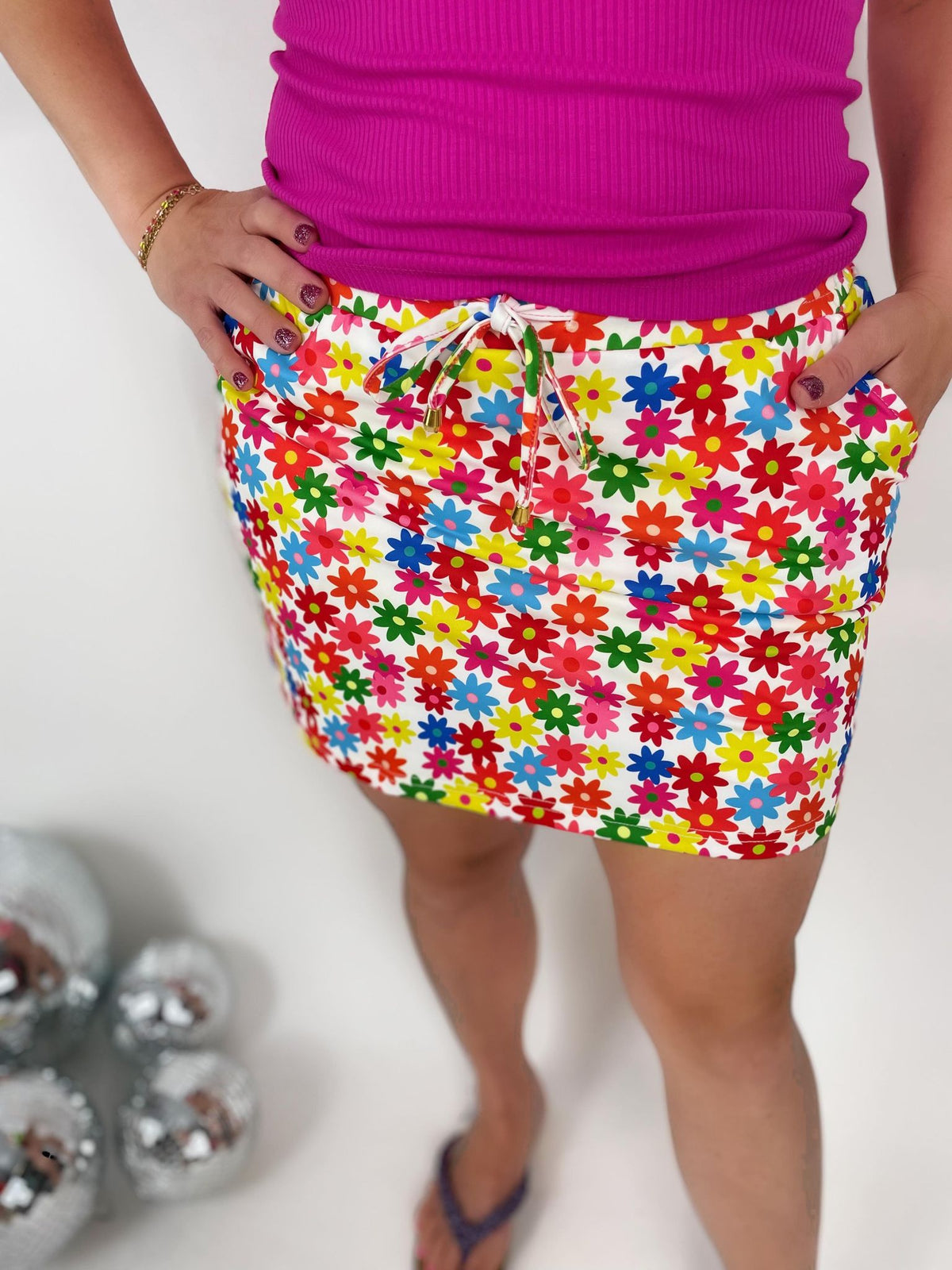 Start a style conversation with this playful colorful floral skort. Made with lightweight fabric, it features an elastic band on the back and built-in shorts to keep you comfortable yet totally on-trend. Side pockets and a drawstring add a practical finishing touch to the fun vibe. Get ready to check out with this skort!