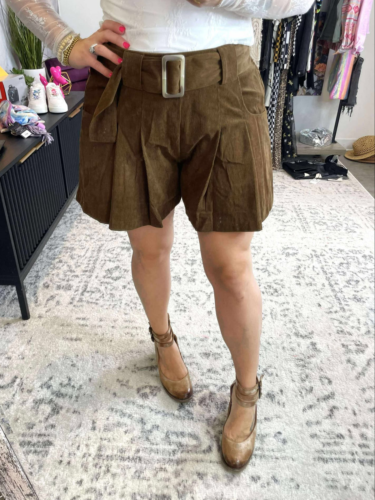 - Flowy Wide Shorts! Belt Included! Pockets!