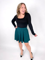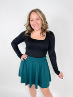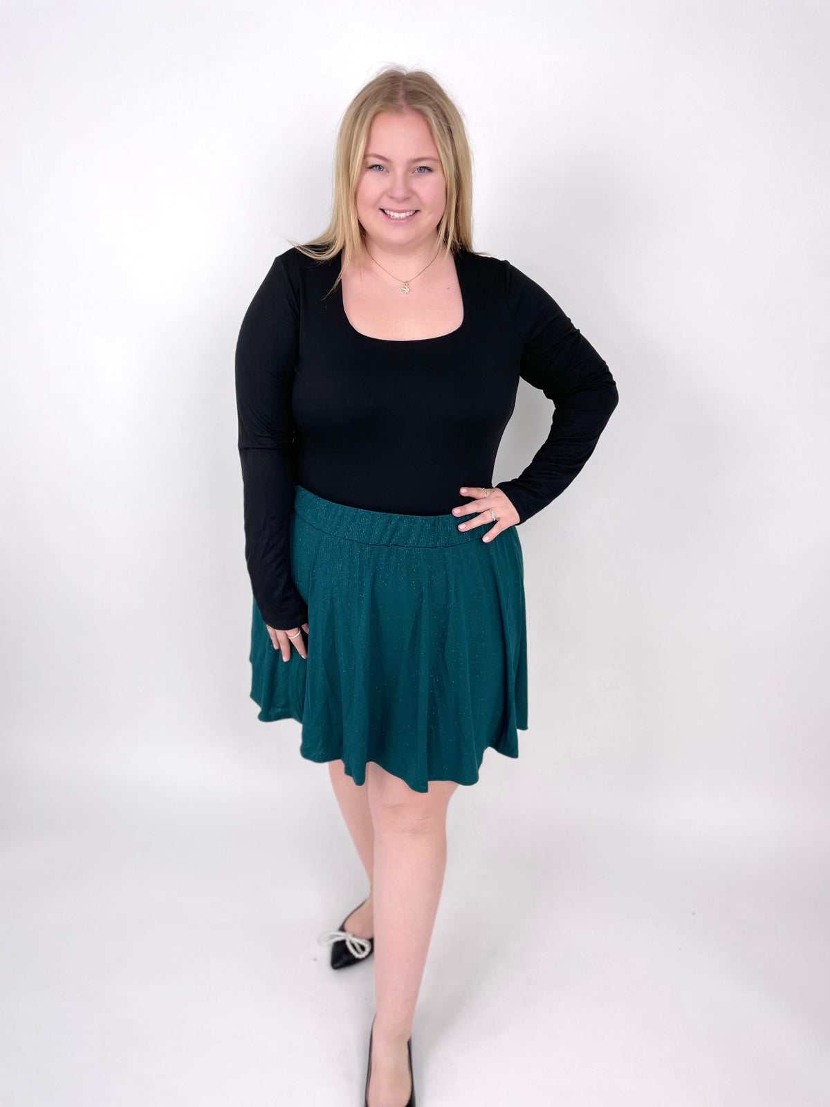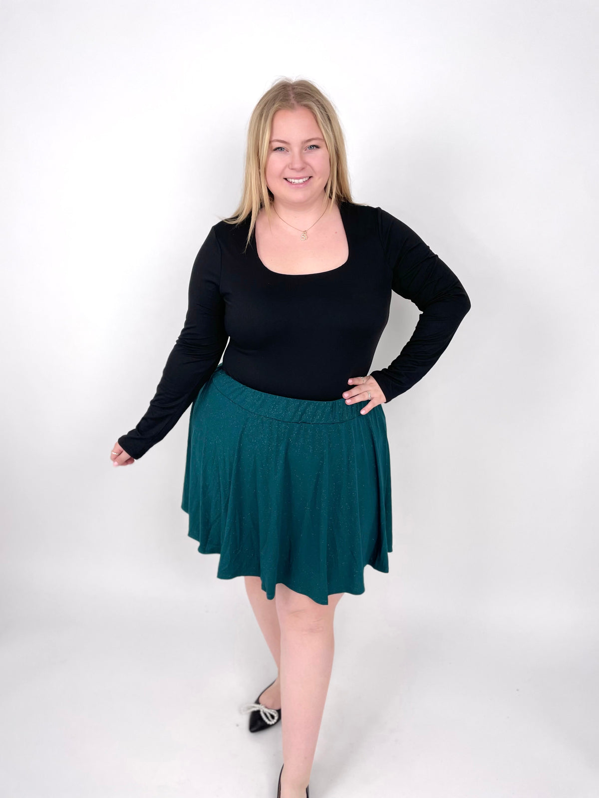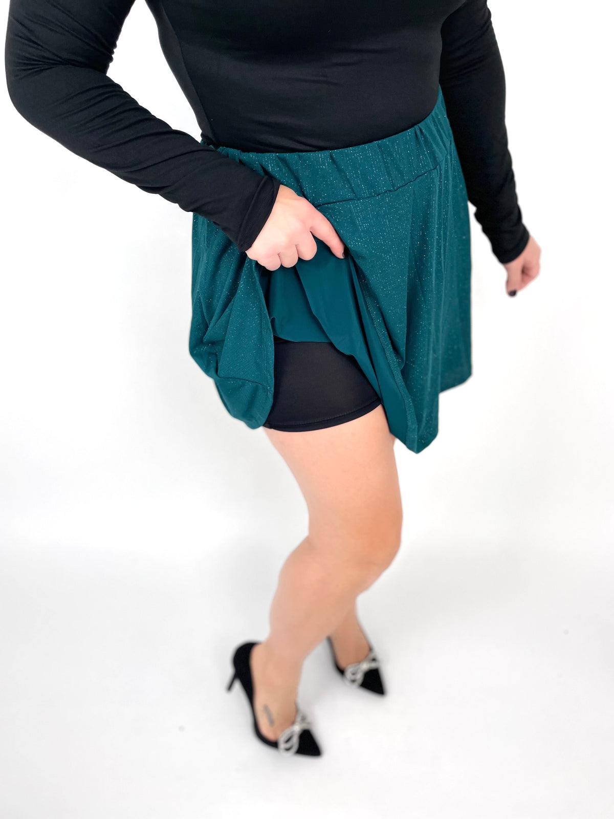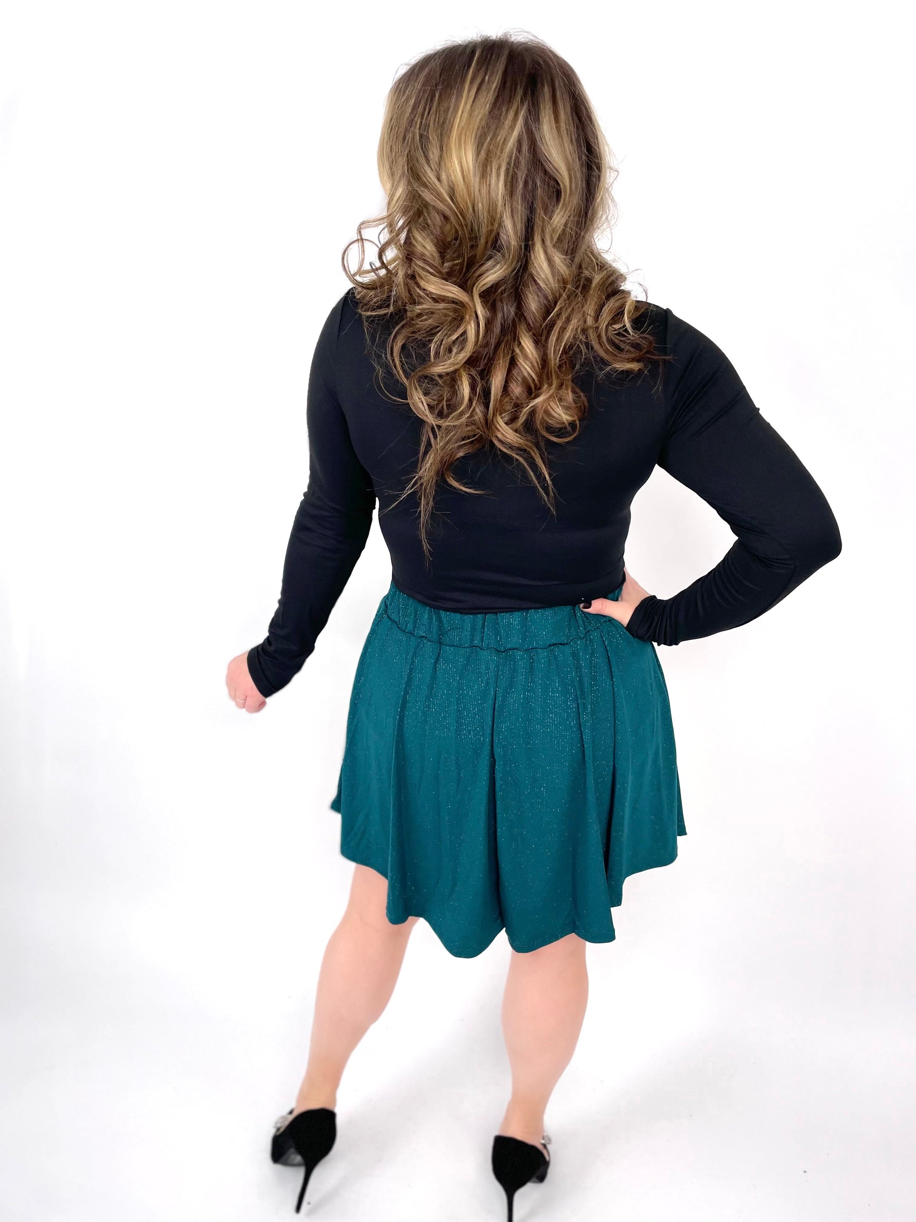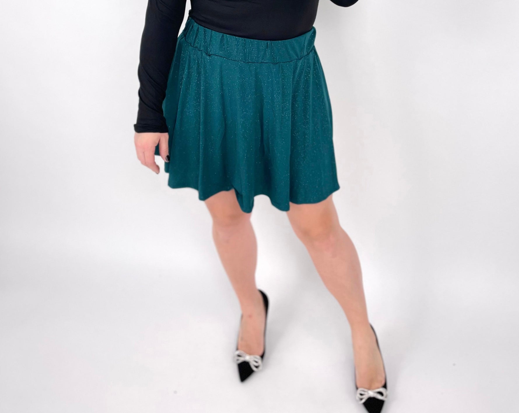 This high-waisted metallic skirt with built-in shorts is so much fun! Complete the look with a cute top and sandals, and you're ready for a fun-filled day out with friends!