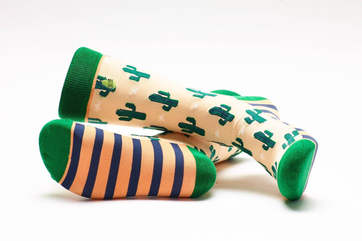 The best way to be around a cactus is when they are a design on your socks! No pricks here! Woven Pear socks are the ultimate in style and comfort. Each pair of socks is made with high quality woven cotton that feels soft and luxurious. Additionally, our socks feature extra padding in the toes and heels to make your feet extra happy!
