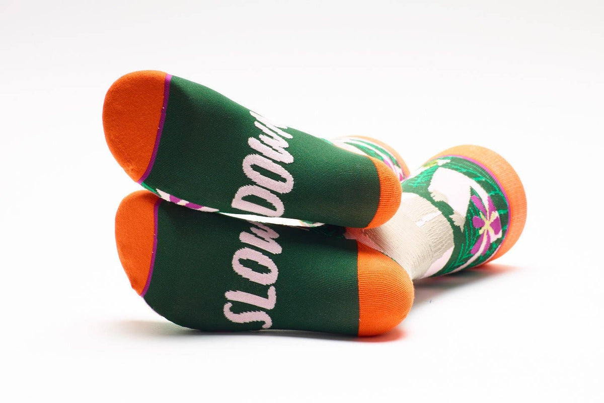 Love sloths? So do we! These super fun socks were made for you and are a great reminder to slow down and enjoy things! Each pair of socks is made with high quality woven cotton that feels soft and luxurious and features extra padding in the toes and heels to make your feet extra happy.