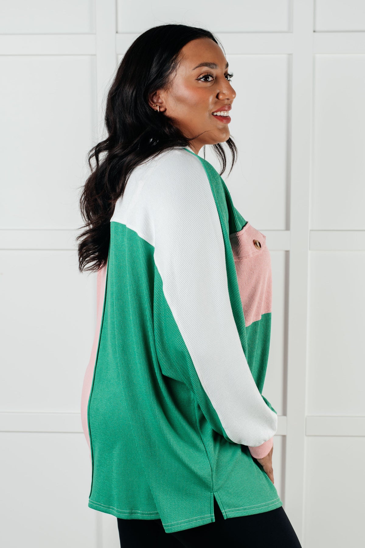 Chip Off the Old Colorblock V-Neck Henley in Green