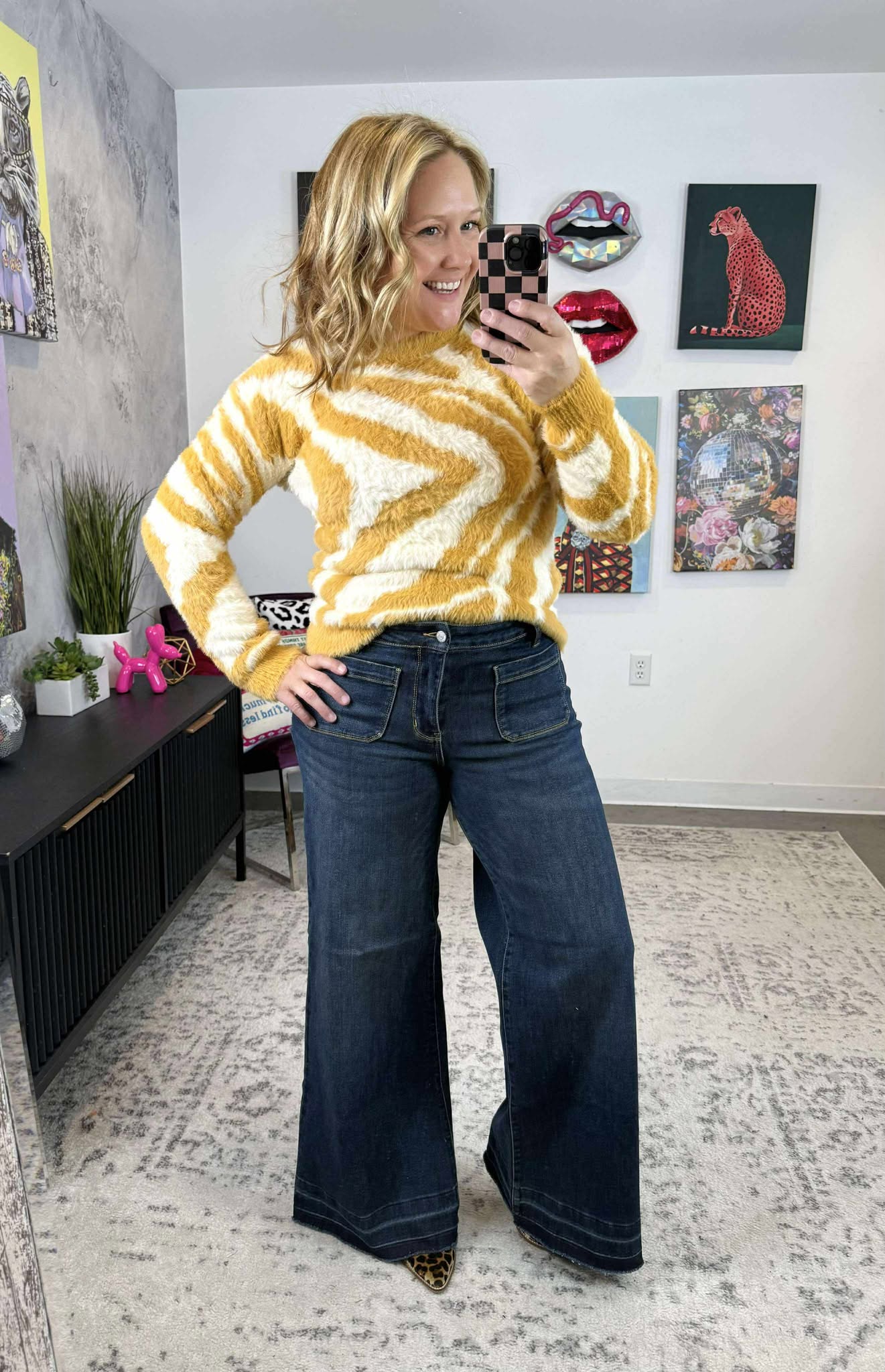 Feel wild and free in our Animal Instinct Sweater. With a cozy crew neckline, playful mohair detailing, and a relaxed, slouchy silhouette, this sweater is perfect for unleashing your inner beast. Keep it cozy and stylish with ribbed edges. Roar on, fashionistas!
