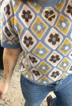 Elevate your everyday style with this charming short sleeve sweater top, featuring an eye-catching diamond and floral pattern that brings a pop of personality to any outfit. The perfect blend of cozy comfort and playful design, this versatile piece layers beautifully or stands alone as a statement top. Available in sizes S-L, it's your go-to for effortless, feel-good fashion that celebrates your unique vibe.