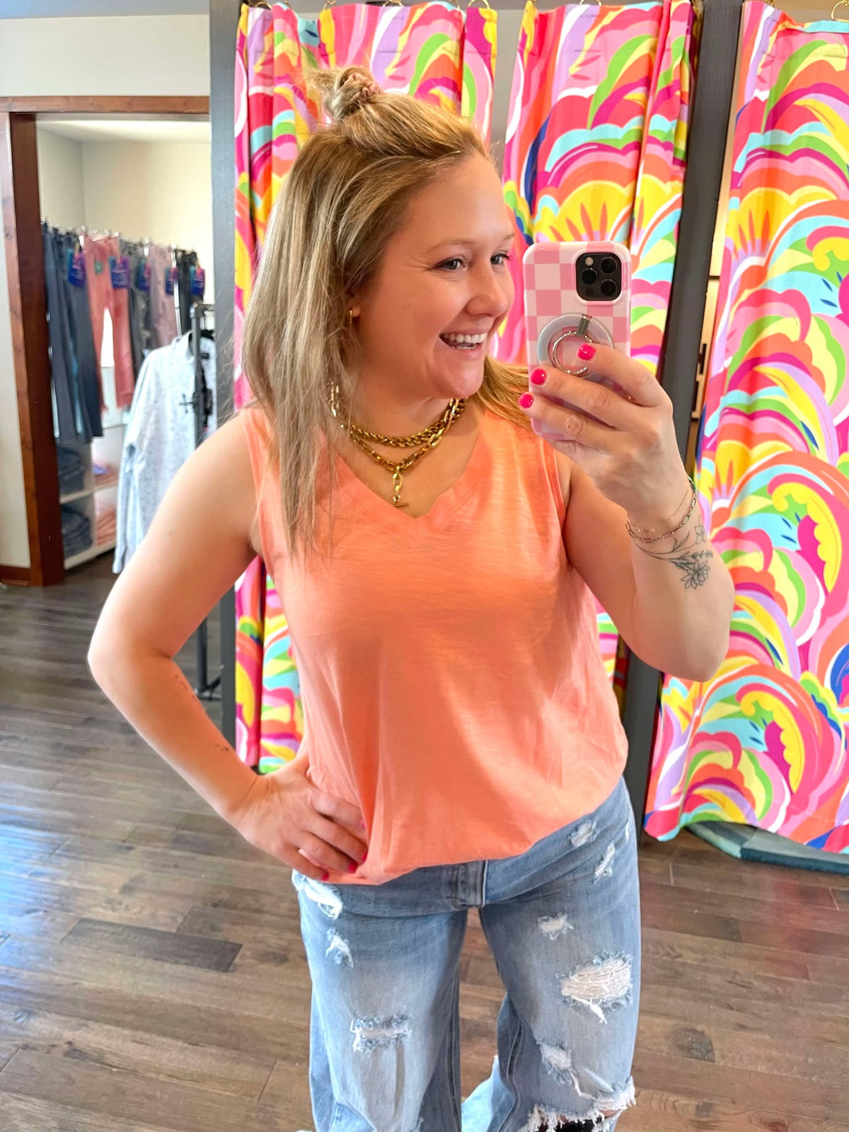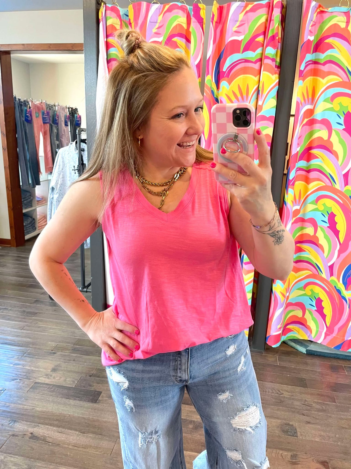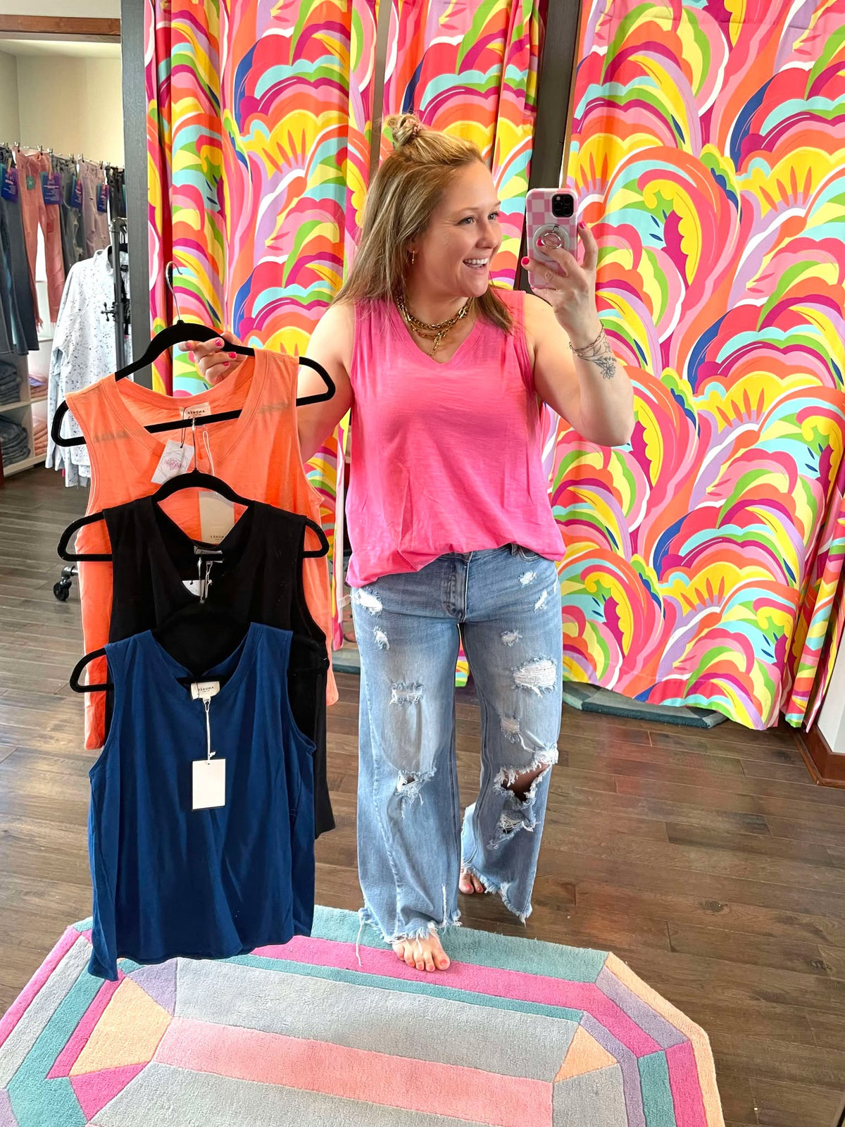 Kara is wearing Small in Hot Pink | Medium in Apricot | Medium in Navy | Large in Black