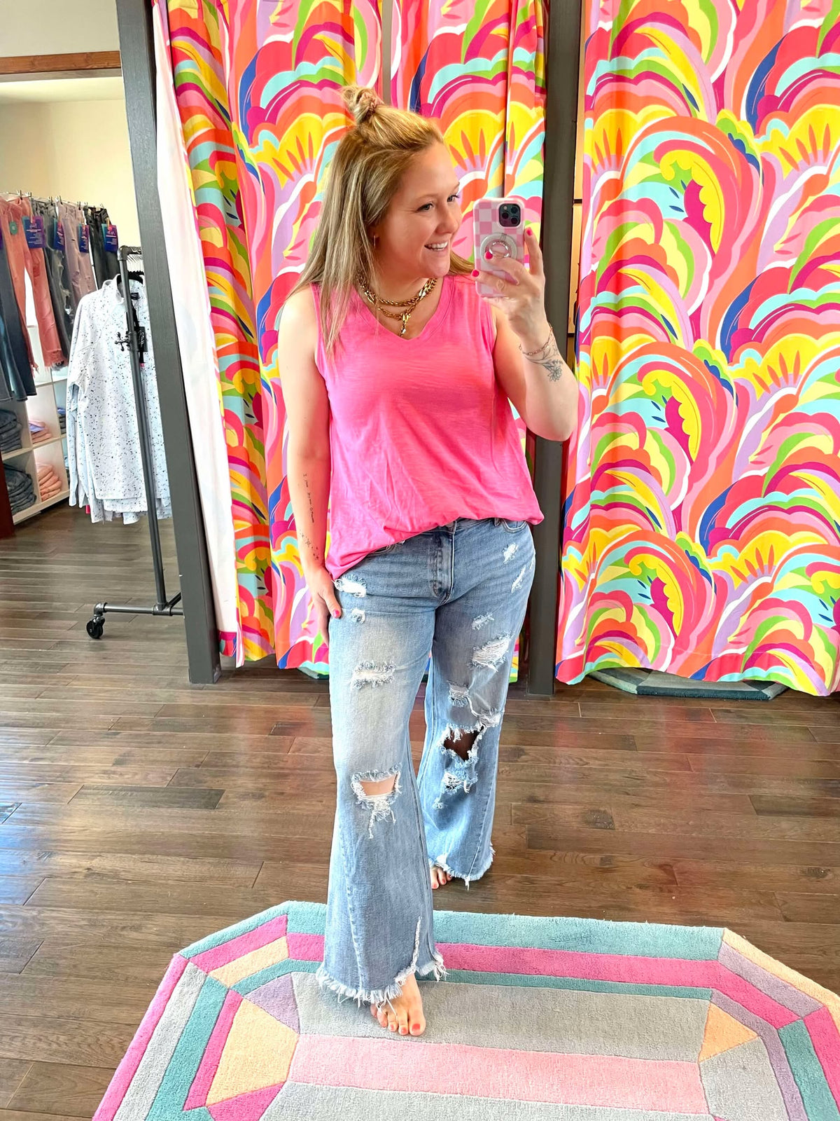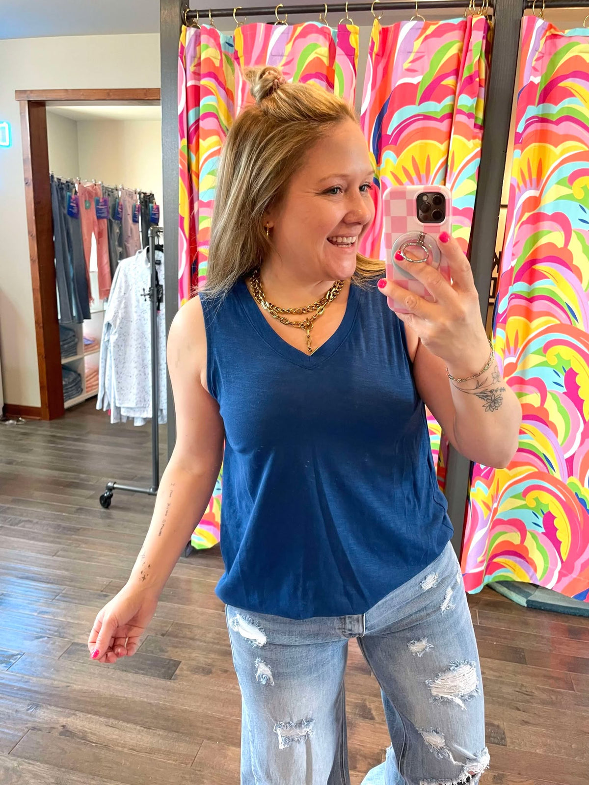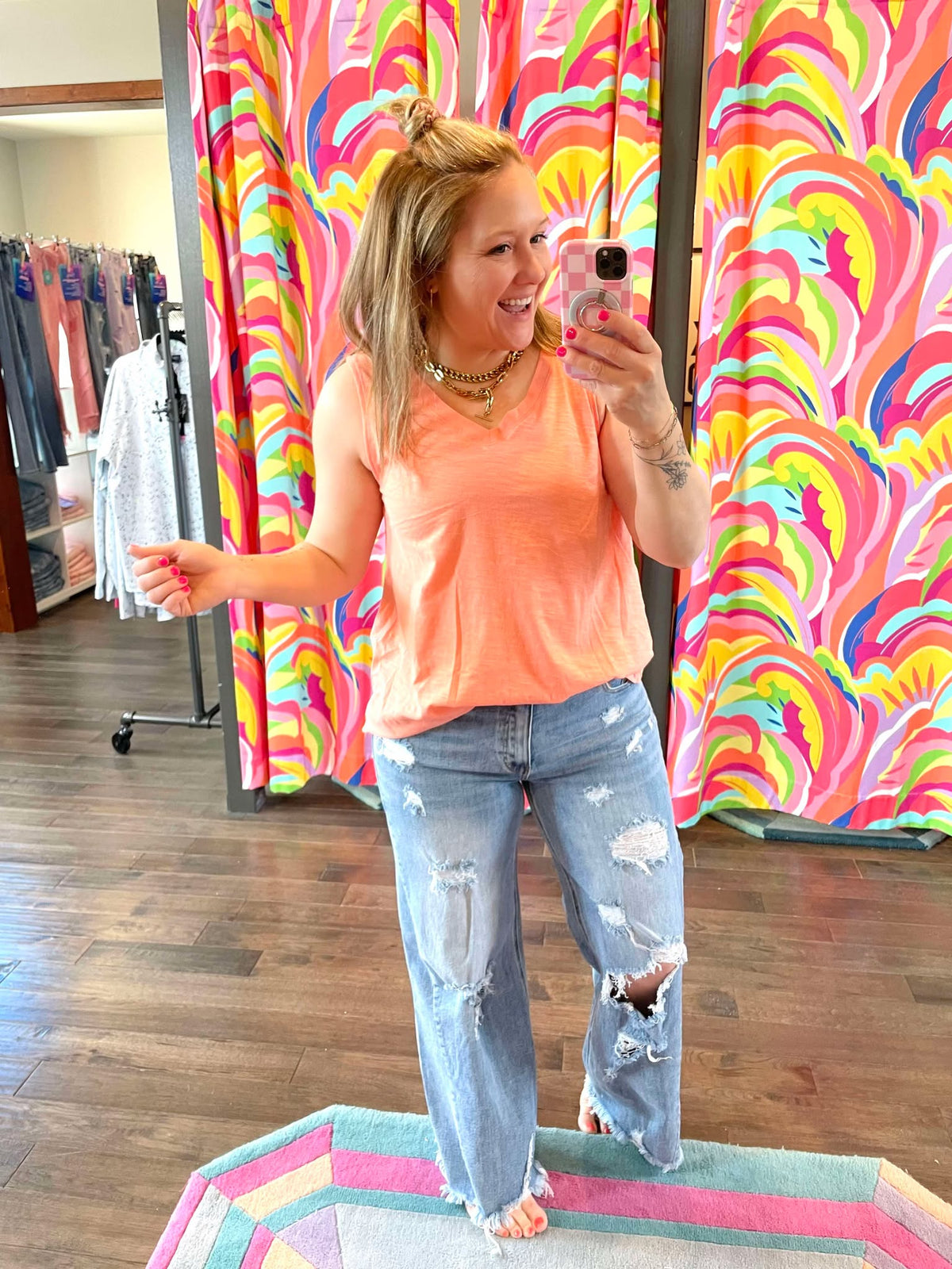 Kara is wearing Small in Hot Pink | Medium in Apricot | Medium in Navy | Large in Black