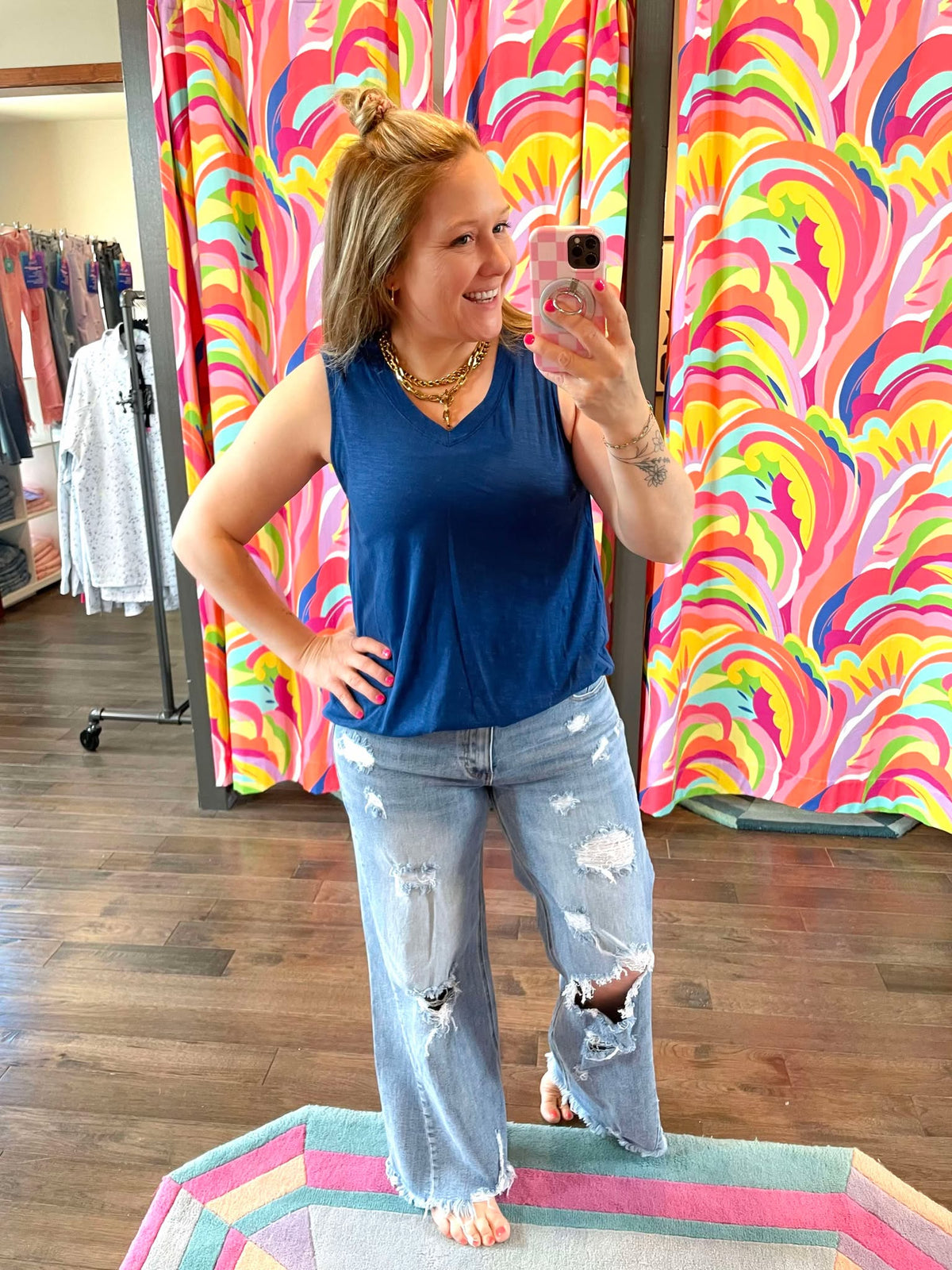 Get your groove on with the Textura Tank. This waffle knit tank top features decorative buttons and a pocket. Available in multiple colors, you'll want one in every hue. (Because one is never enough!!!)