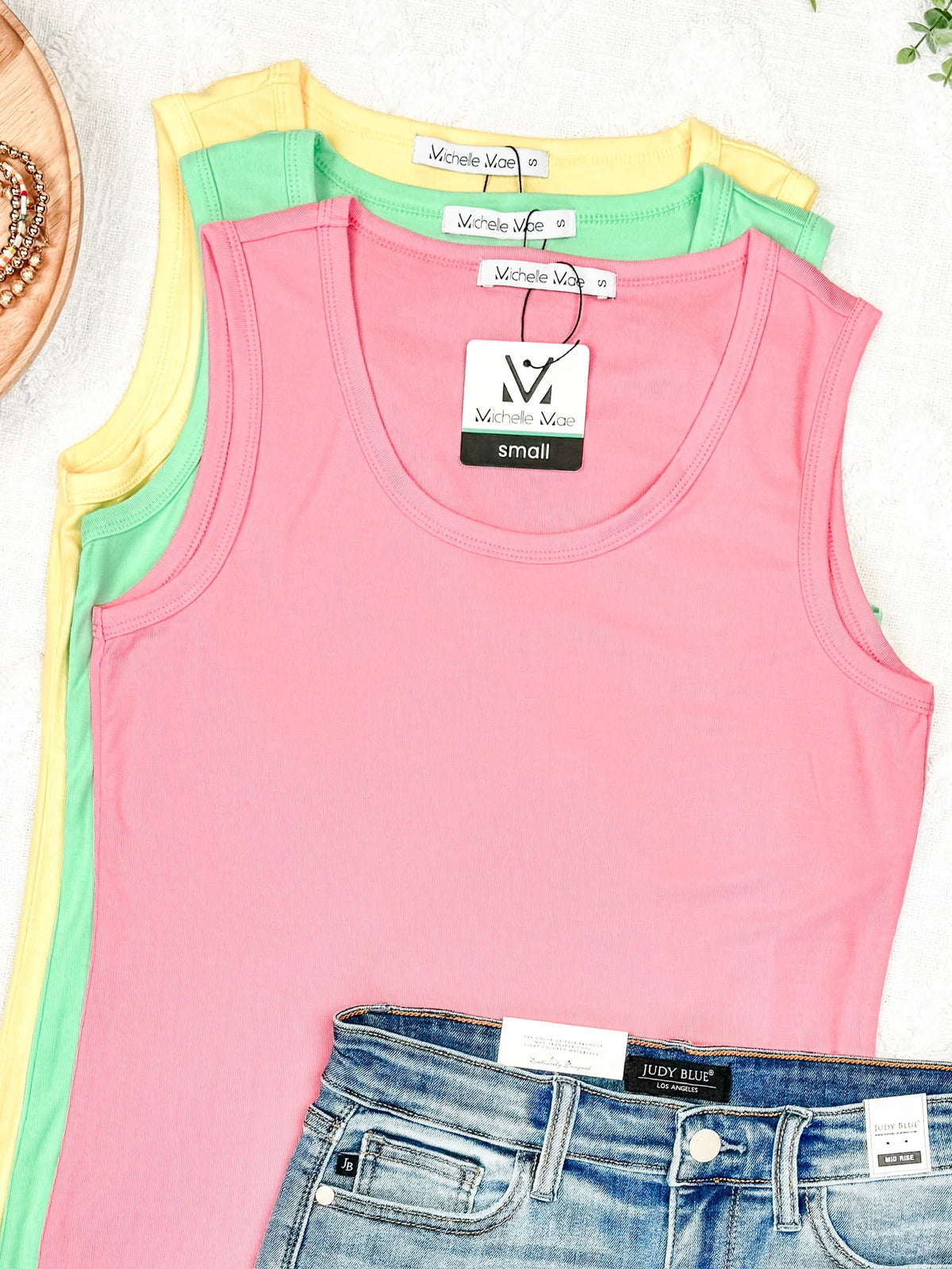 Meet Ava! She is your next go-to everyday tank! This tank has a micro ribbed fabric that is SUPER stretchy with a feminine fit. Wear it alone or pair it with your favorite cardigan! She will sure be a must have in all colors!