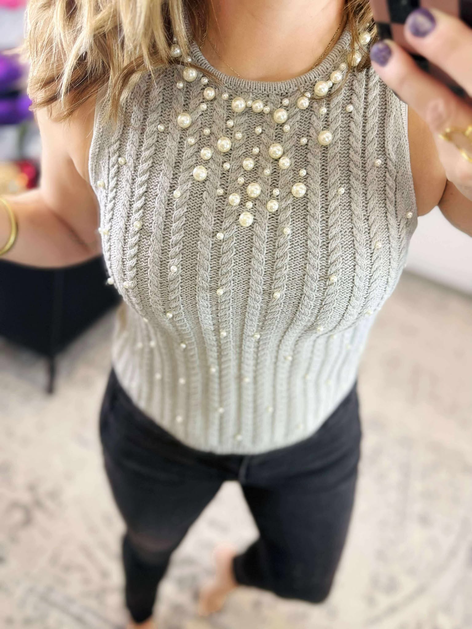 Pearl Gleam Sleeveless Knit Top {S-3X}