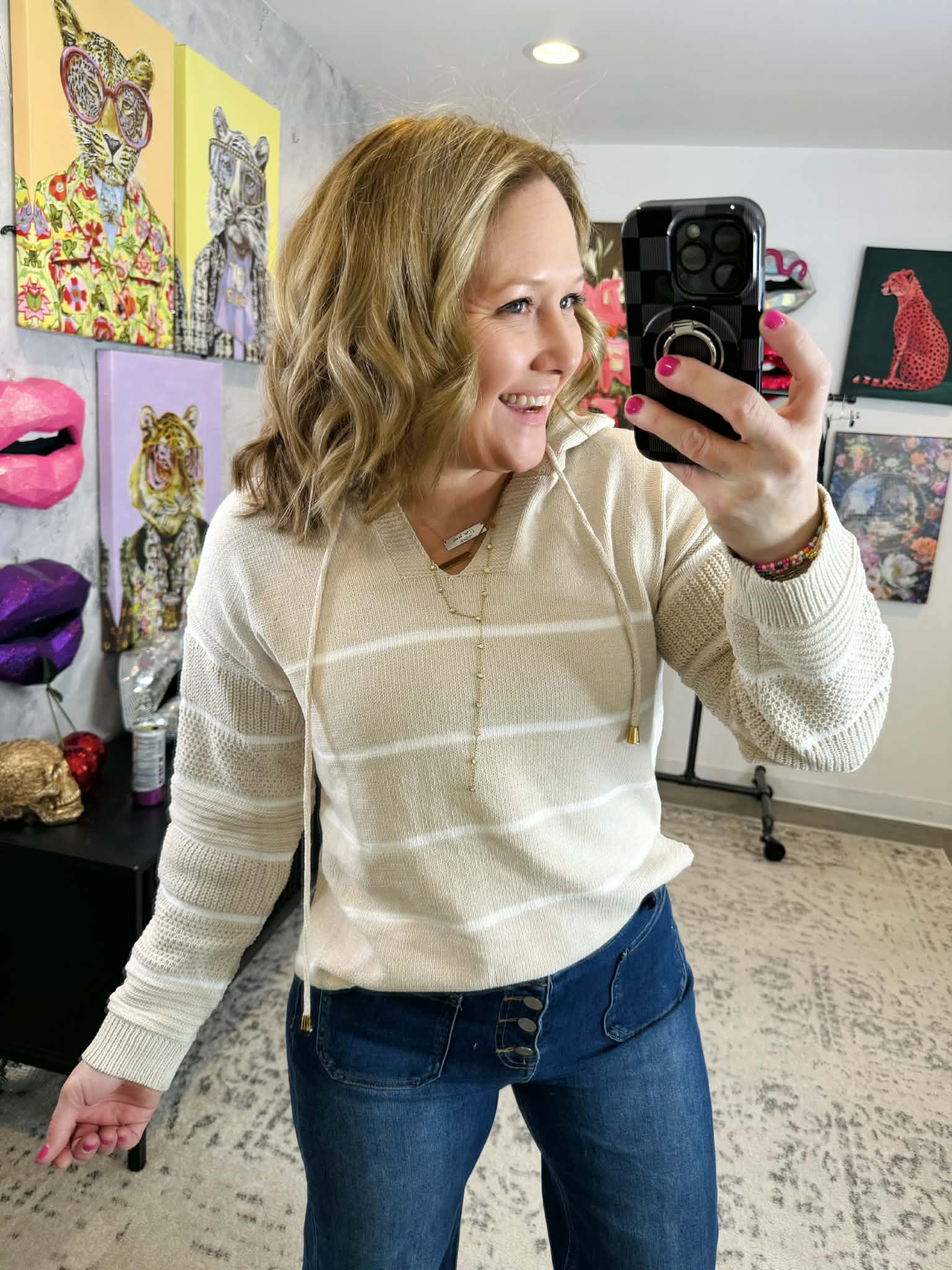 MM Maddie Striped Hoodie - Natural {S-3X}