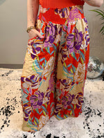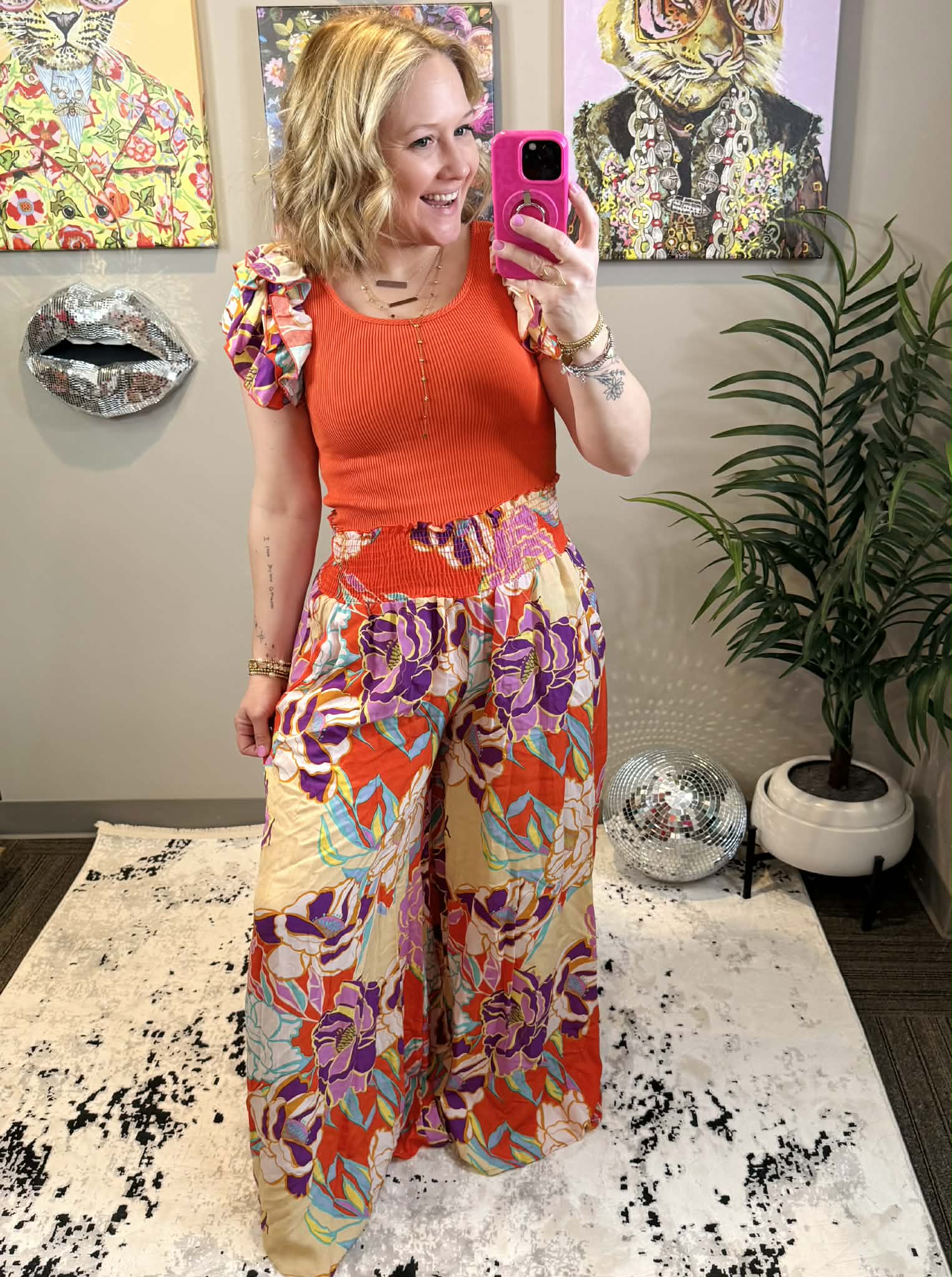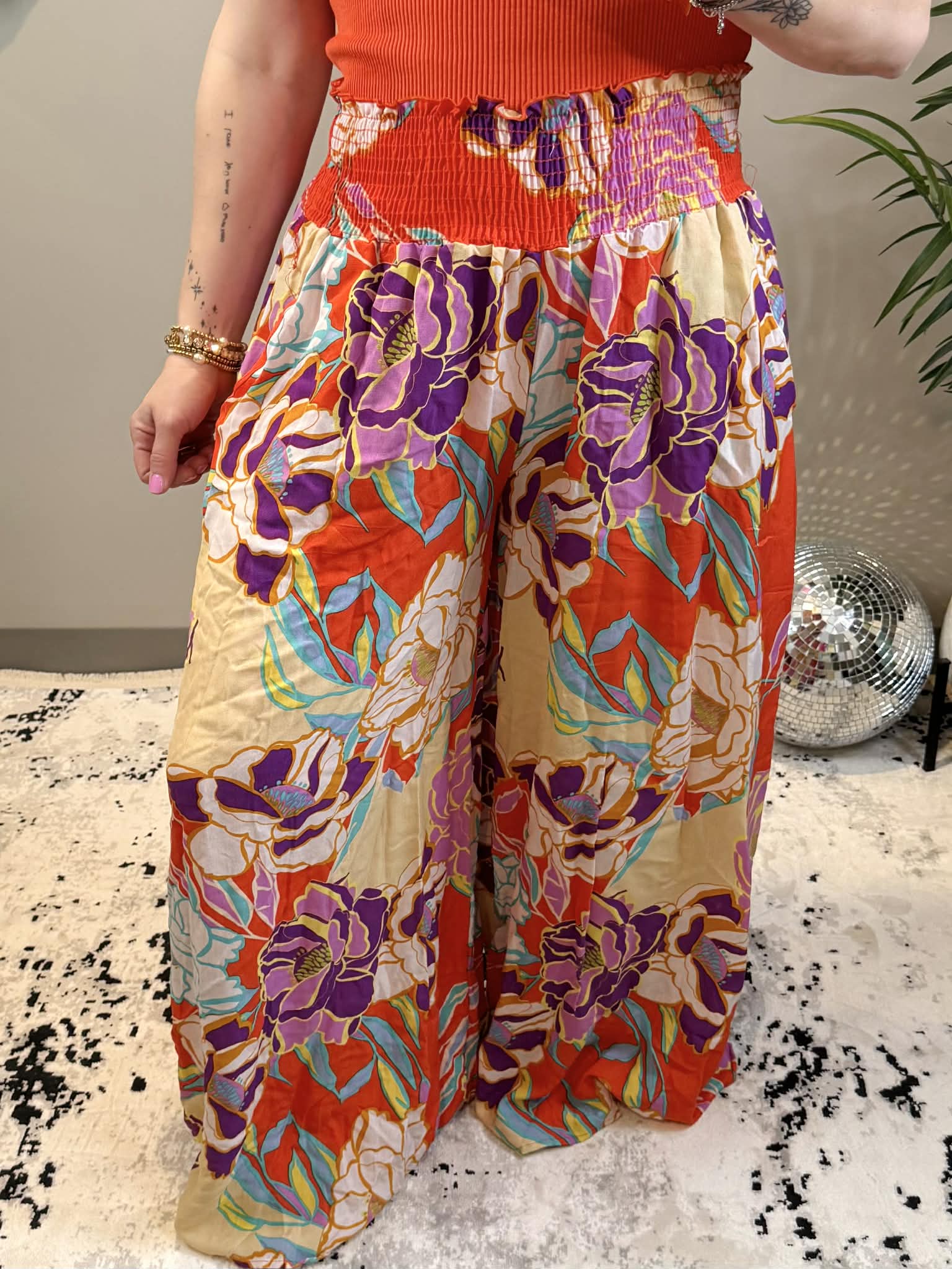 Take hold of summer and feel the breeze in these gorgeous floral print pants! The high-rise, smocked waistband provides comfort and flexibility while the wide-leg, maxi design will give you a fun, flowy look all day! The woven fabric is soft and lightweight with pleating throughout and the best part is there are pockets on both sides! Wear with a crop top or tank, and your favorite sandals, and be ready for a day on the town or a night out with friends!