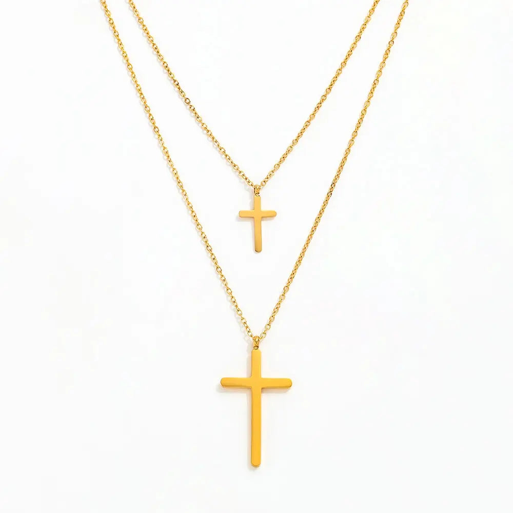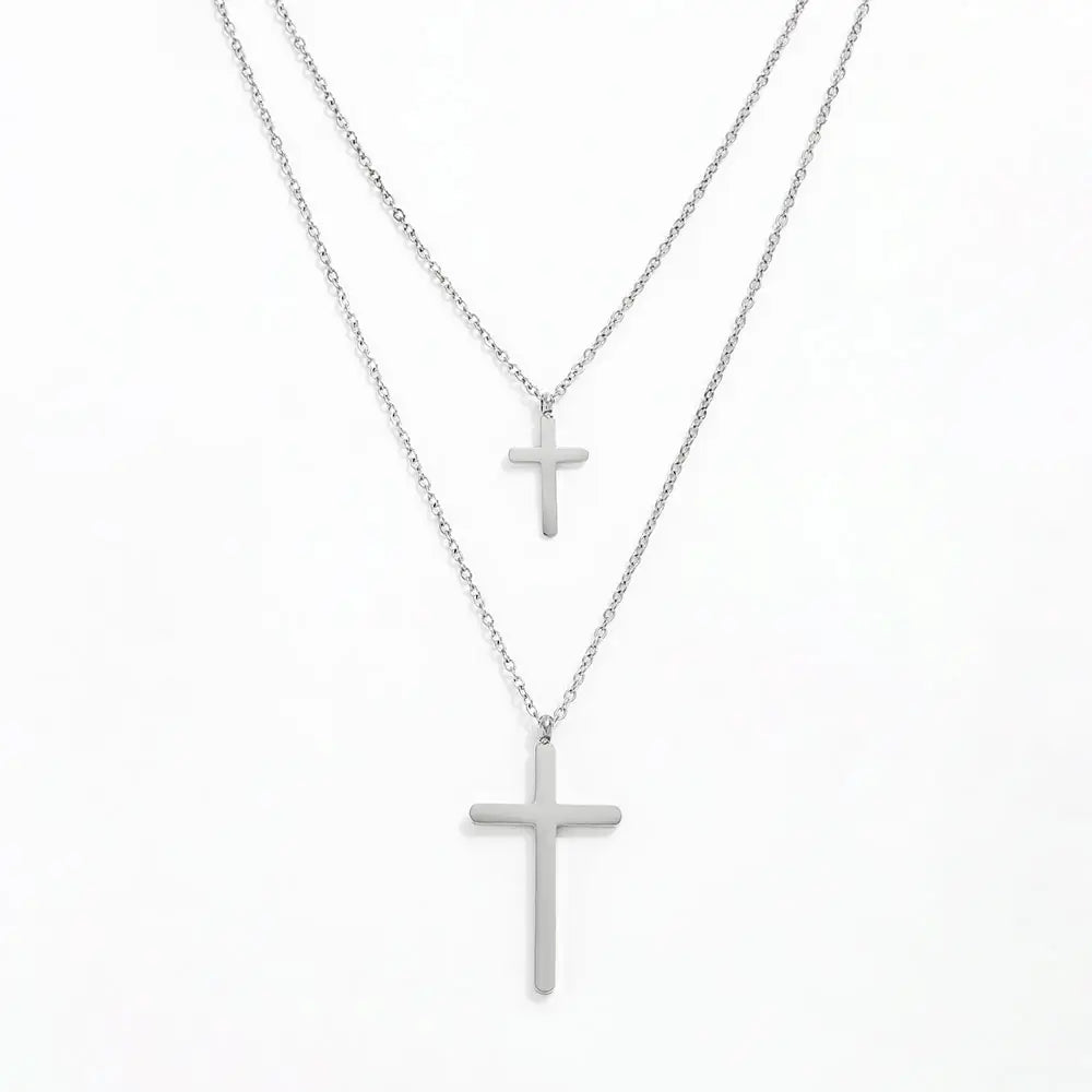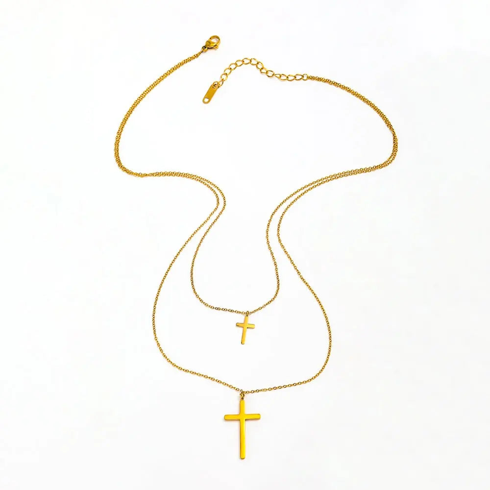 Spice up your style with our Double Layer Cross Necklace! This stainless steel piece adds a unique edge to any outfit, and it's waterproof (perfect for the pool or beach!). Make a statement with our trendy jewelry!
