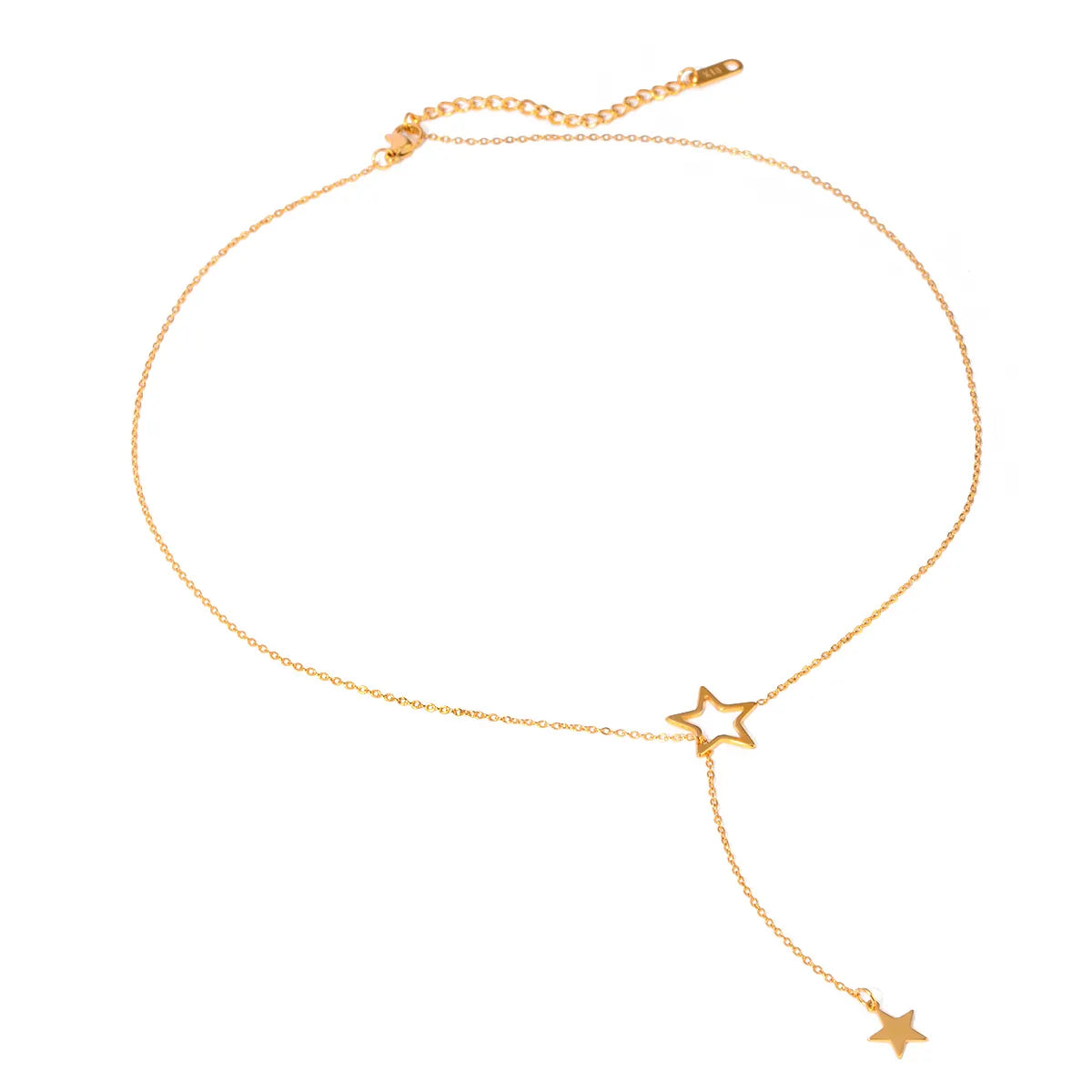 Shine like a star with our Shooting Star Y Necklace! This 18k gold plated stainless steel necklace features a unique Y style design and is also waterproof for all your adventures. A stellar addition to any outfit, guaranteed to make you stand out (pun intended)!