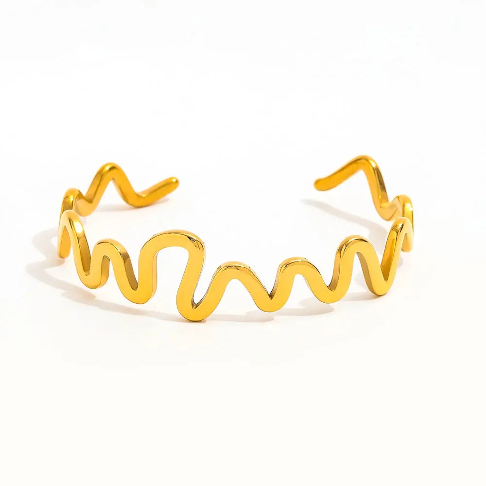 Make a splash with our Wave Cuff Bracelet! This waterproof jewelry is perfect for any water lover and is made of durable 18k gold plated stainless steel. Ride the wave of style and durability with this unique and playful accessory.