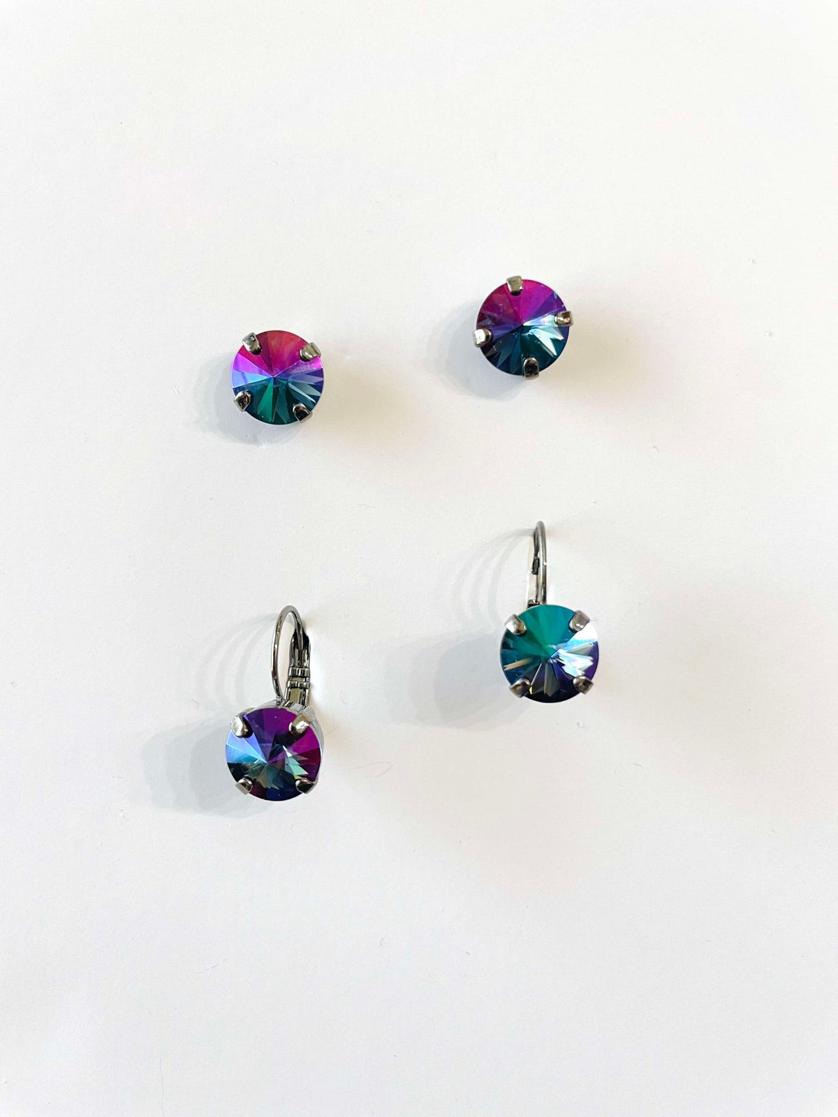10mm Drop or Post in Sapphire Purple Haze set into Black Metal