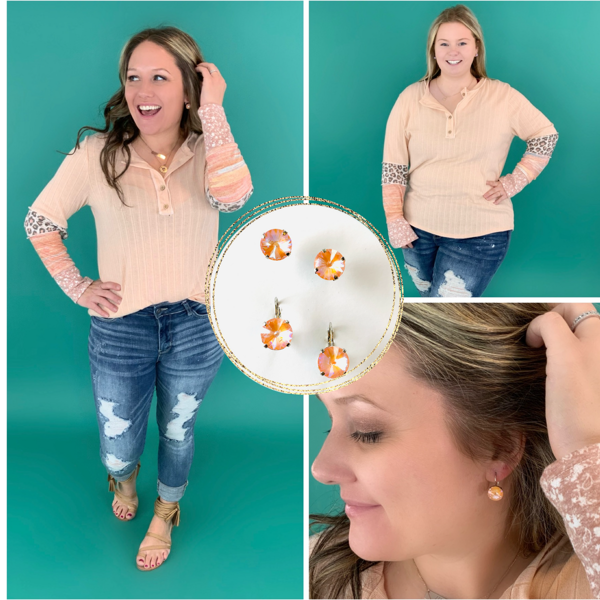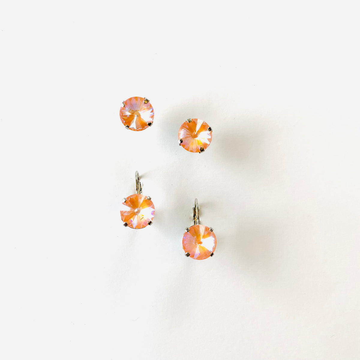 12mm Drop OR Post featuring Light Peach DeLite set into Shiny Silver Metal