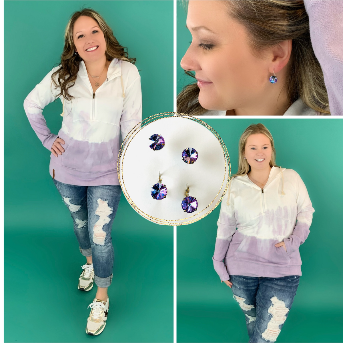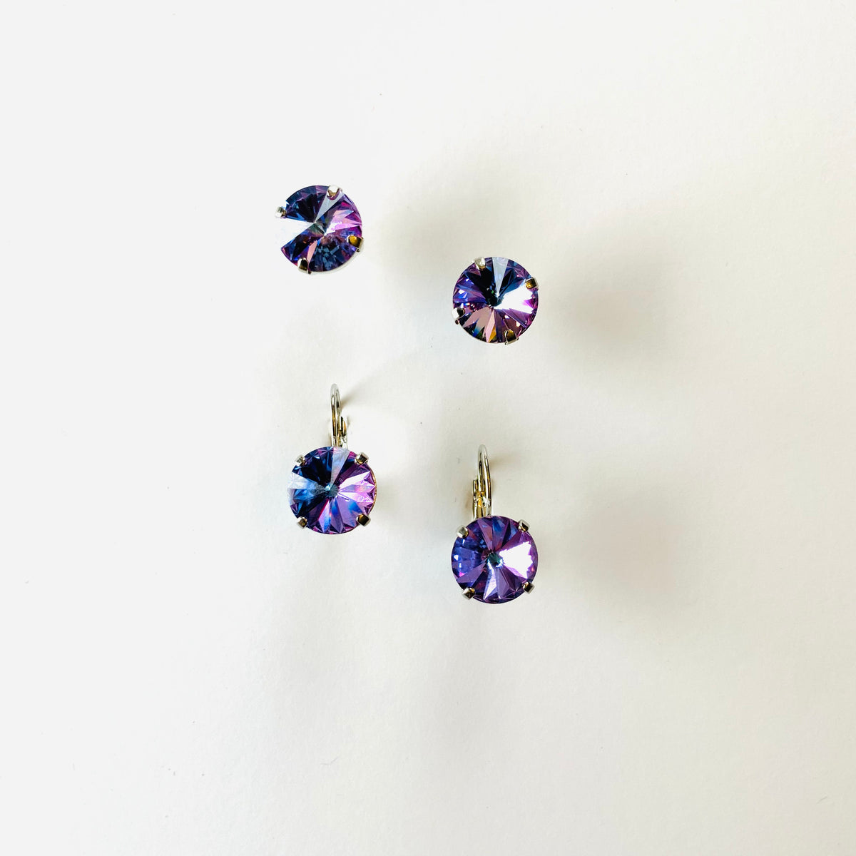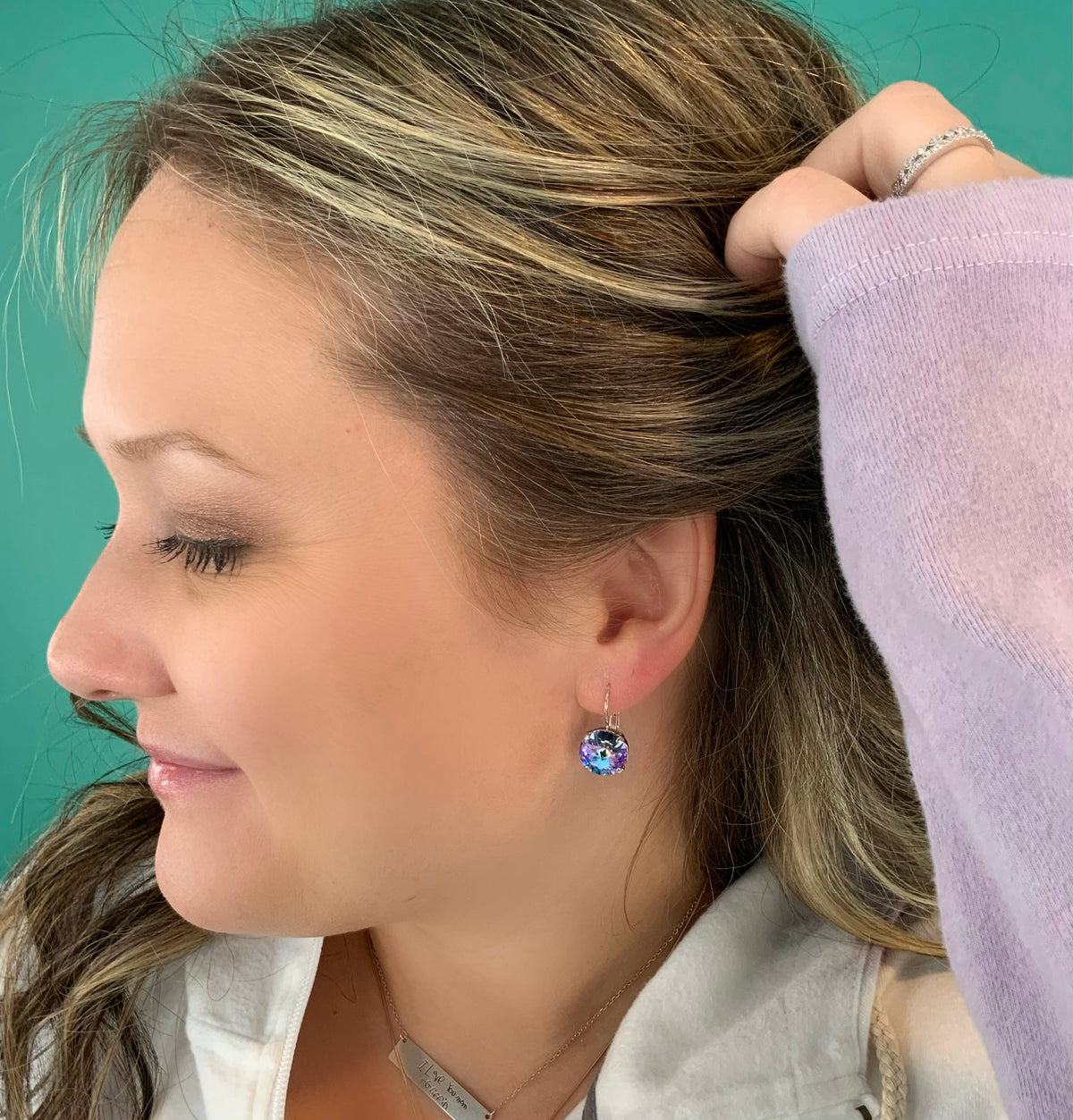 12mm Drop OR Post featuring Light Vitrail set into Shiny Silver Metal