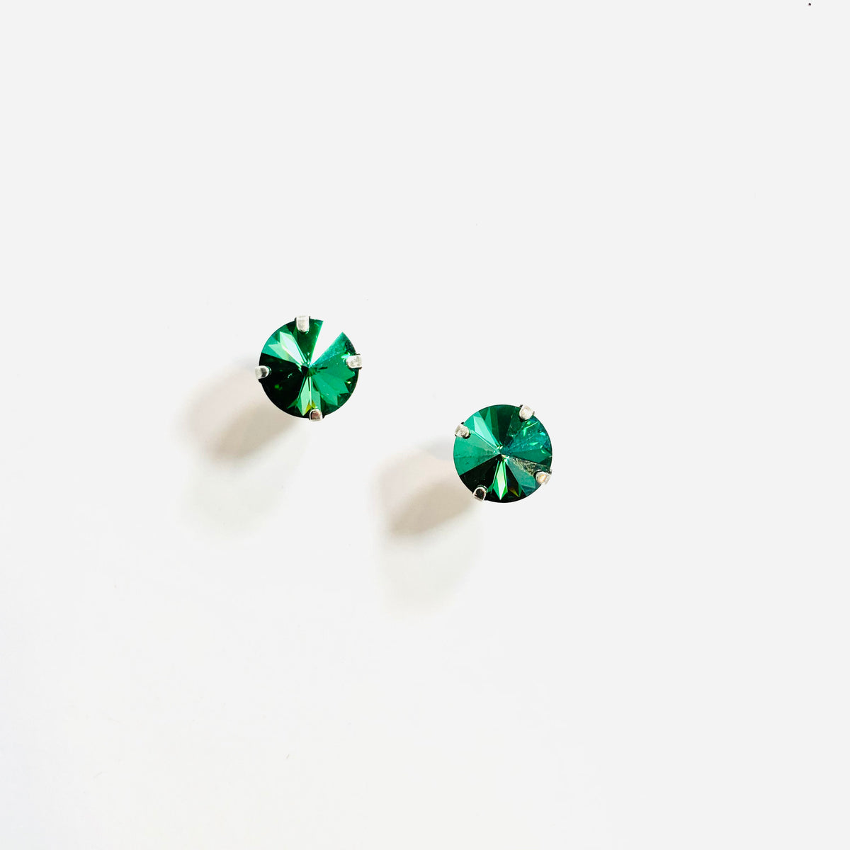 12mm Post Earring in Green Envy set into Shiny Silver Metal